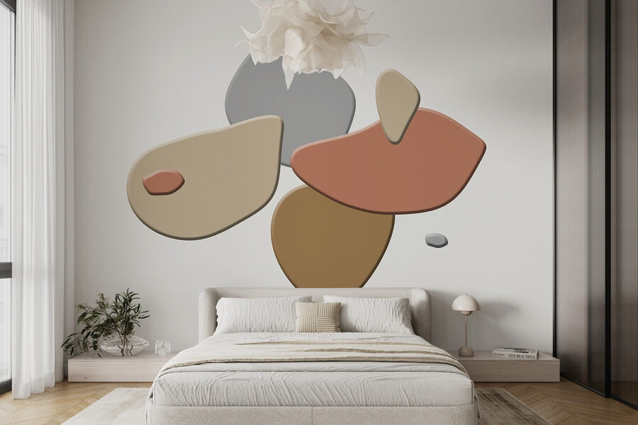 Stel je voor, nippend aan een kopje thee terwijl het zonlicht danst op die gladde vormen – het voelt als een minivakantie, nietwaar? Het is ook een gespreksstarter. Vrienden zullen niet zomaar een blik werpen en voorbij lopen; ze zullen stoppen om te bewonderen en te praten over hoe deze kleuren zoveel warmte brengen. Deze muurschildering is perfect voor een woonkamer of een rustig kantoor en geeft elke hoek het juiste gevoel. Er is iets met die stenen – misschien herinneren ze ons eraan om te vertragen en te genieten van de kleine dingen. Wie wist dat muurdecoratie zoveel vreugde kon uitstralen?