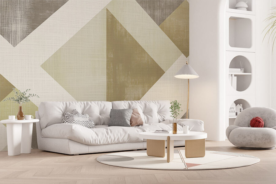 Transformeer je ruimte met deze prachtige muurschildering met een abstract geometrisch patroon in rustgevende, gedempte tinten. Stel je eens voor dat je een kamer binnenstapt waar zacht groen en warme taupe tinten samen dansen en een sfeer creëren die zowel modern als comfortabel is. Het is alsof je een stukje elegantie uit een kunstgalerie in de woonkamer brengt, zonder pretentieus te zijn. Of het nu een gezellig hoekje is of een lichte gang, deze muurschildering nodigt uit tot eindeloze complimenten en een gesprek over ontwerpkeuzes. Bovendien, wie houdt er niet van een beetje geometrische charme? Het kan zelfs inspireren tot een spontaan spelletje “aan welke vorm doet dat je denken?”. Onthoud dat muren verhalen vertellen – laat deze een gespreksstarter zijn!