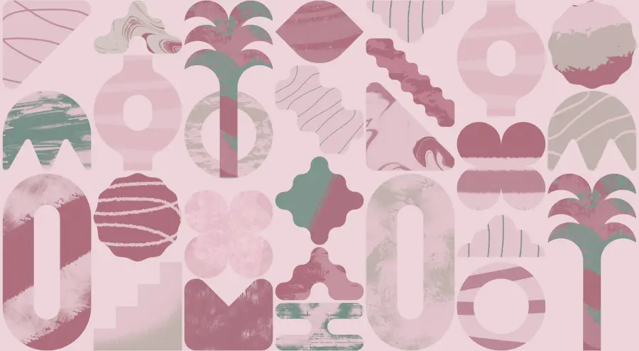 Fotobehang Roze en groene achtergrond met verschillende vormen (SKU: w02550)