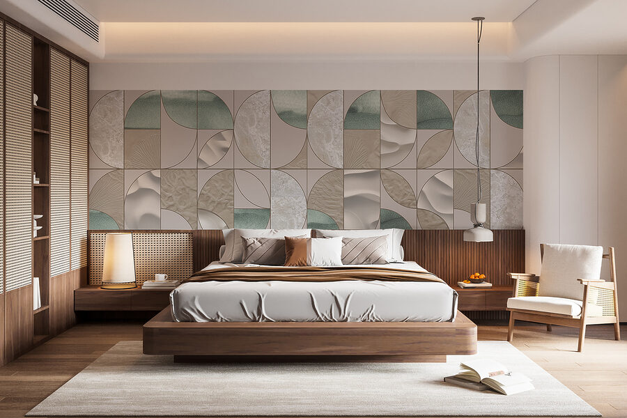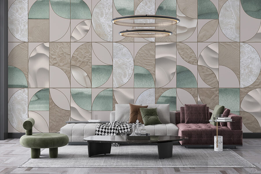 - Behang met verschillende kleuren op verschillende tegels