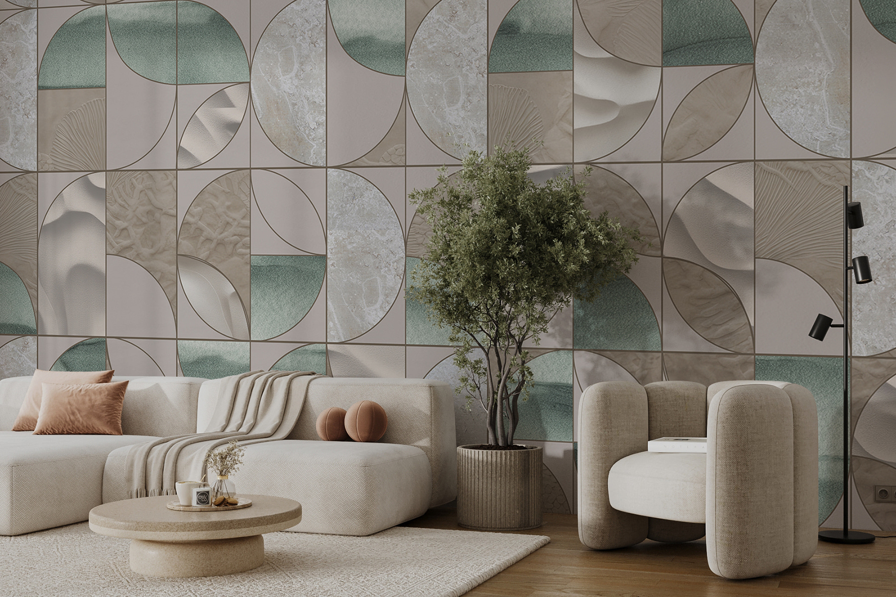 Tover elke kamer om in een gezellig meesterwerk met deze prachtige muurschildering met een speelse dans van cirkels. Stel je voor dat je een ruimte binnenstapt waar licht en vormen zich vermengen en je uitnodigen om elk hoekje en gaatje te verkennen. De rustgevende tinten vermengen zich op natuurlijke wijze en creëren een zachte sfeer die precies goed voelt, of het nu een rustig leeshoekje is of het levendige middelpunt van je huis. Het is alsof je een kunstwerk hebt dat tot je spreekt en uitnodigt tot warmte en creativiteit. Vrienden zullen je waarschijnlijk complimenteren met je unieke flair, en misschien verdwaal je wel in het ritme. Perfect voor wie houdt van stijl met een twist!