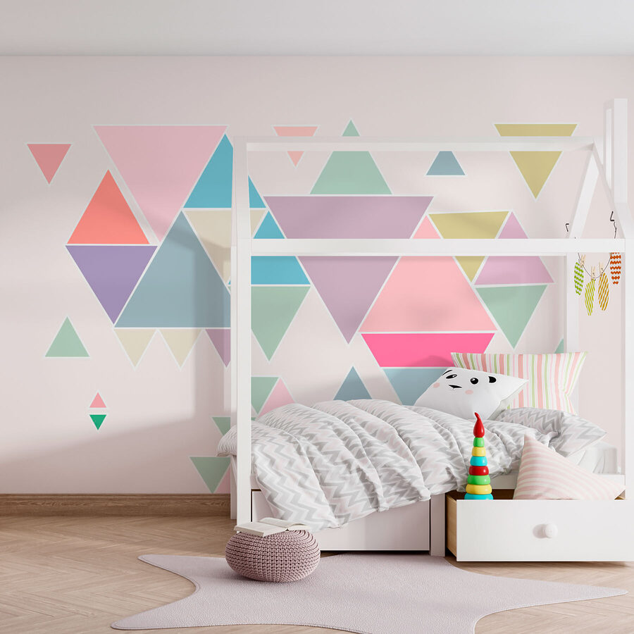 Stel je dit eens voor: een caleidoscoopexplosie op je muur. Deze muurschildering “Group of Triangles” mengt zachte pasteltinten en gedurfde vormen tot een abstract meesterwerk dat gewoon om aandacht vraagt. Perfect voor die dagen dat je kamer een knaller kan gebruiken, of wanneer je gewoon genoeg hebt van het gewone beige. Stel je voor dat je aan je koffie zit te nippen, terwijl de driehoeken je verhalen vertellen over lang vergeten triomfen in de meetkundeles. Het is net yoga voor je ogen, kalmerend en verkwikkend. Hang het op, laat de complimenten binnenstromen en geniet van je dagelijkse dosis kleurrijke chaos!