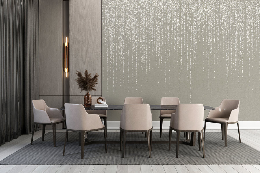 Het transformeren van een ruimte kan aanvoelen als magie en deze muurschildering, “White Specks on a Grey Surface”, doet precies dat. Stel je voor dat je een kamer binnenstapt waar die zachte, zachte vlekken speels lijken te dansen tegen een kalme grijze achtergrond. Het is net een zachte sneeuwval, maar dan op je muur!