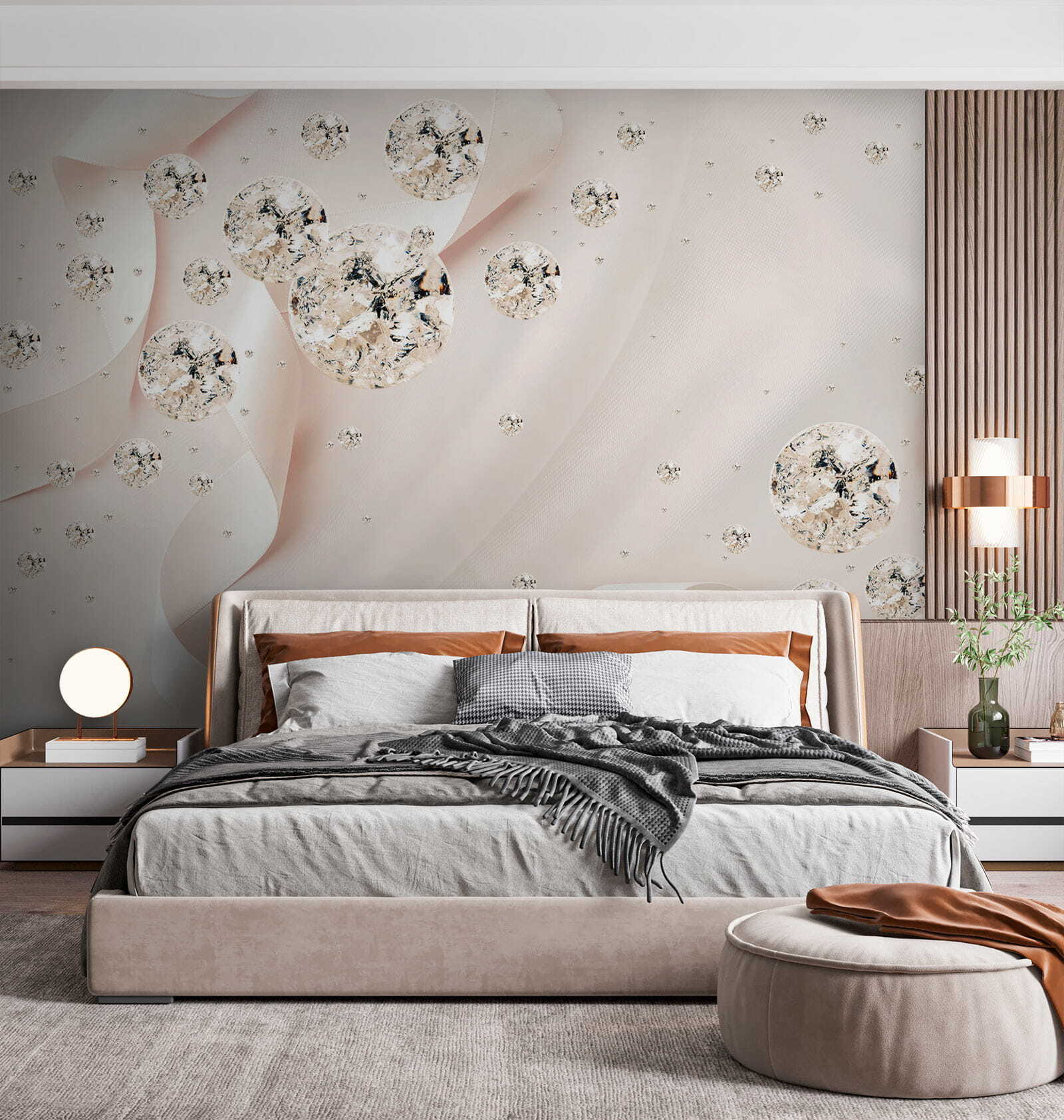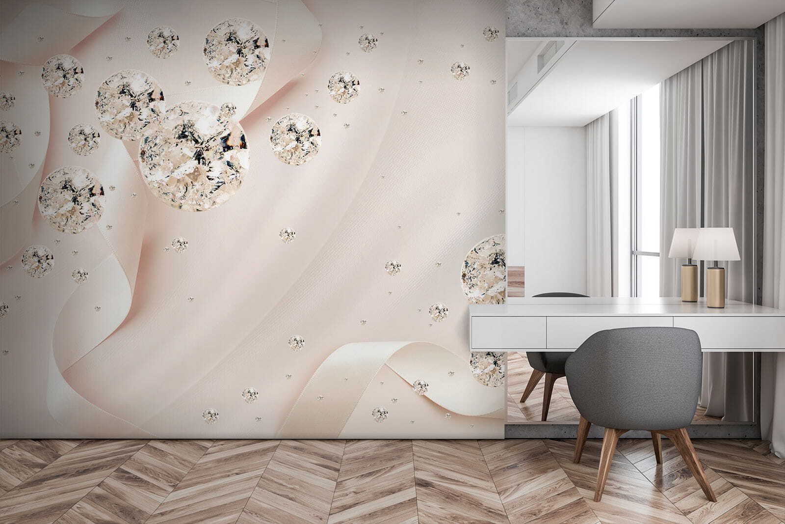 Verander een saaie muur in een levendig canvas met deze prachtige muurschildering. Stel je voor: delicate linten die rond betoverende bollen wervelen, waardoor elke kamer zowel gezellig als elegant aanvoelt. Het is als een dromerige dans van zachte kleuren en zachte vormen, perfect voor als die effen muur het gewoon niet meer doet. Of het nu een serene slaapkamer is of een levendige leefruimte, deze muurschildering fluistert charme en gratie – als een warme knuffel voor je muren. Breng een vleugje betovering in je huis en laat je gasten zich afvragen hoe je zo’n magie voor elkaar hebt gekregen. Het is decor met een vleugje kunstzinnige flair!