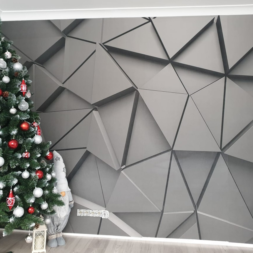 Een ruimte transformeren is nu nog cooler met dit monochroom geometrisch abstracte patroon. Stel je voor: een muur die minder een achtergrond is en meer een kunstwerk dat smeekt om een vriendelijk praatje. De overlappende driehoeken creëren een coole 3D vibe die fris aanvoelt, alsof je een moderne kunstgalerie binnenstapt zonder je huis te verlaten. Het geeft een gevoel van diepte en drama, perfect voor mensen die houden van strakke lijnen en gedurfde uitspraken. Licht dat weerkaatst via deze hoeken prikkelt de verbeelding. Of het nu in een gezellige woonkamer staat of in een trendy kantoor, het zal zeker een gesprek op gang brengen – en misschien een beetje afgunst bij vrienden die op bezoek komen. Stel je voor dat een van hen zegt: “Dat heb ik nodig in mijn leven!”. Wie zou dat niet willen? Omarm het gewaagde en laat je muren het woord doen.