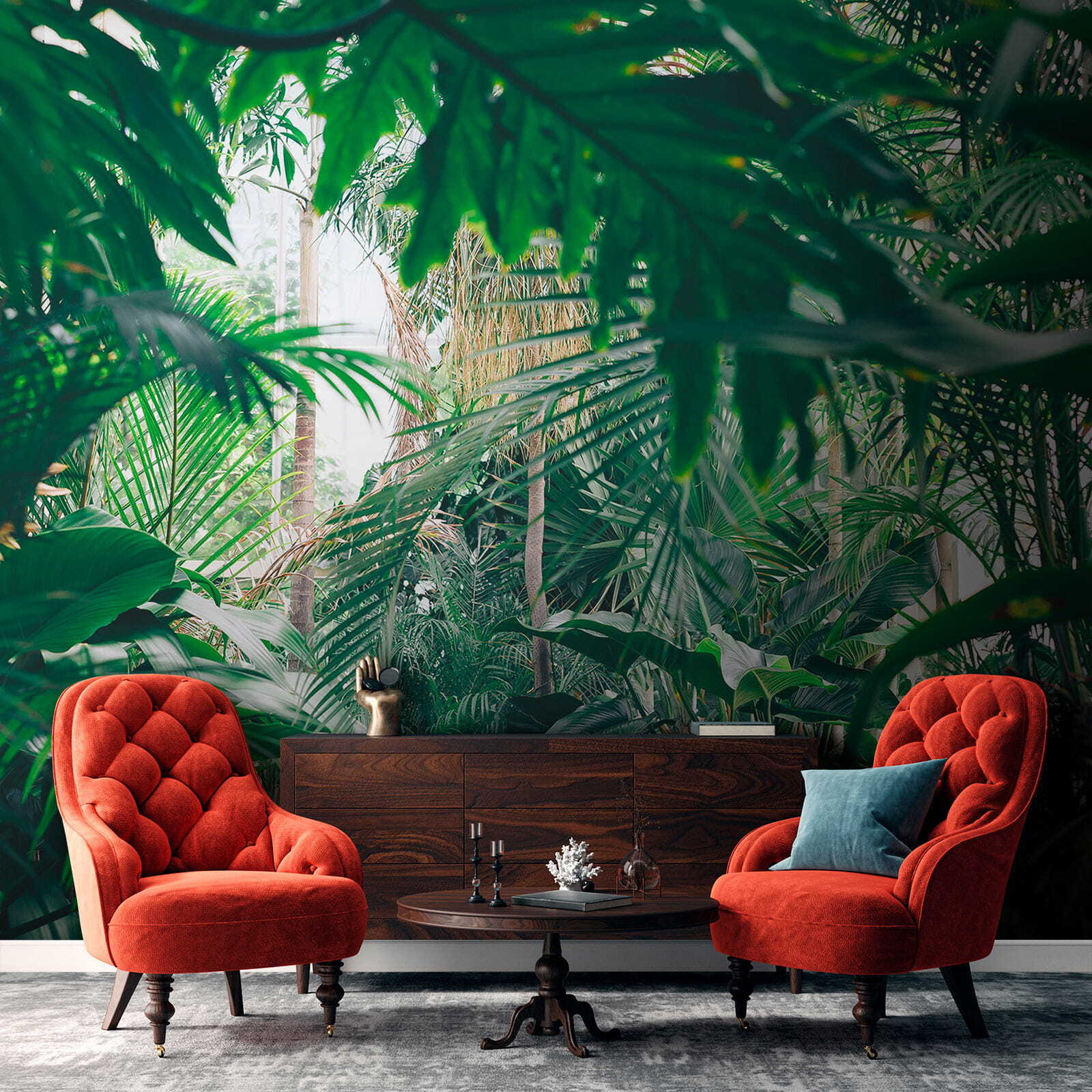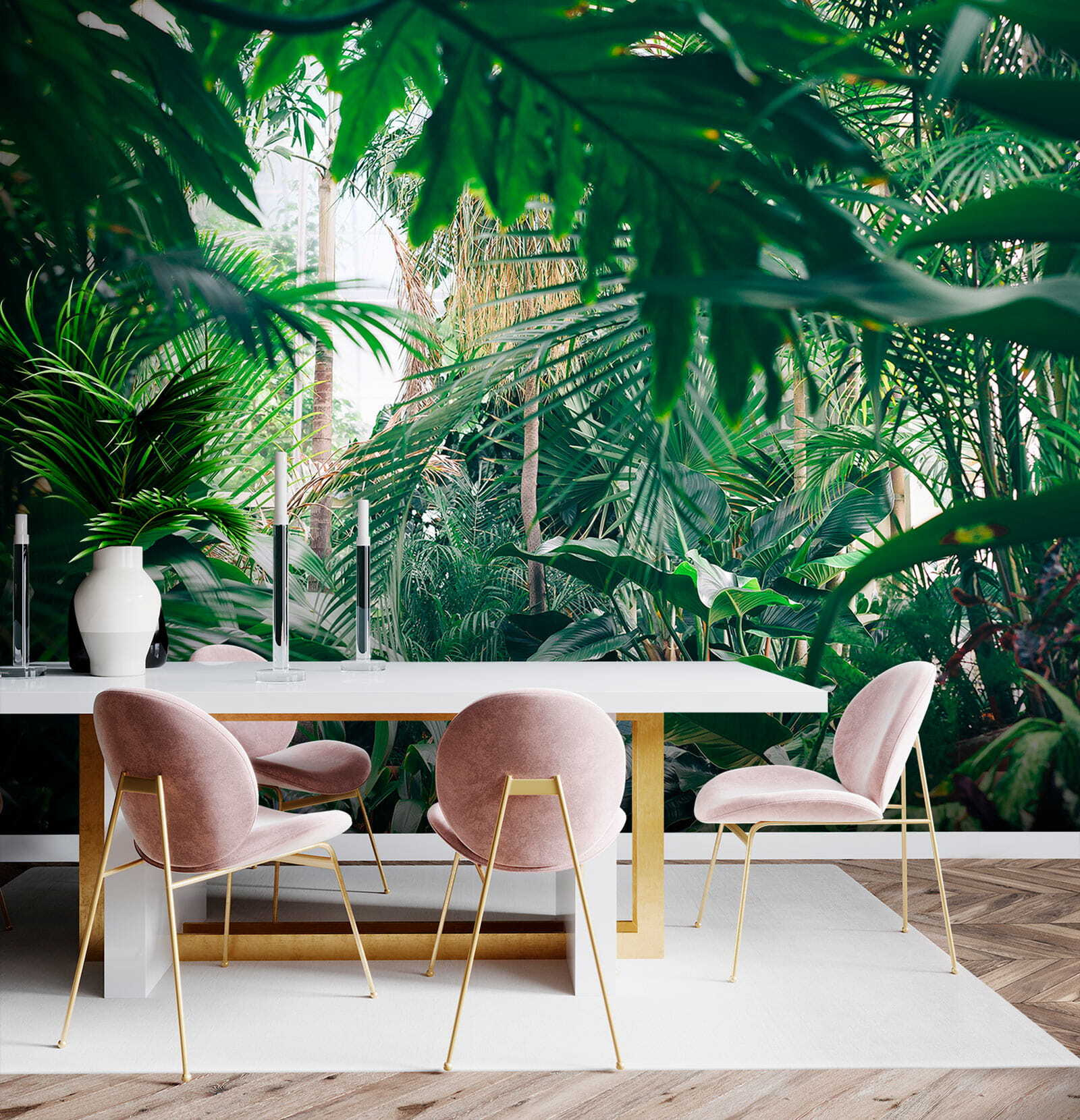 Tover elke kamer om in een tropisch paradijs met deze prachtige muurschildering van weelderige junglebladeren die baden in het zonlicht. Stel je voor dat je je kamer binnenloopt en het gevoel hebt dat je direct in een serene jungle bent gestapt, waar de lucht fris is en het zonlicht precies goed door de bladeren filtert. Het is alsof je een stukje natuur in huis haalt zonder insectenspray! Perfect voor wie een beetje groen wil, maar geen groene vingers heeft. Vrienden zullen denken dat je thuis de ultieme vakantieplek hebt gevonden. Stel je voor dat je lekker gaat zitten met een goed boek of geniet van een kopje koffie, omringd door dit levendige toevluchtsoord. Het is niet zomaar een muurschildering; het is een frisse wind voor je muren!
