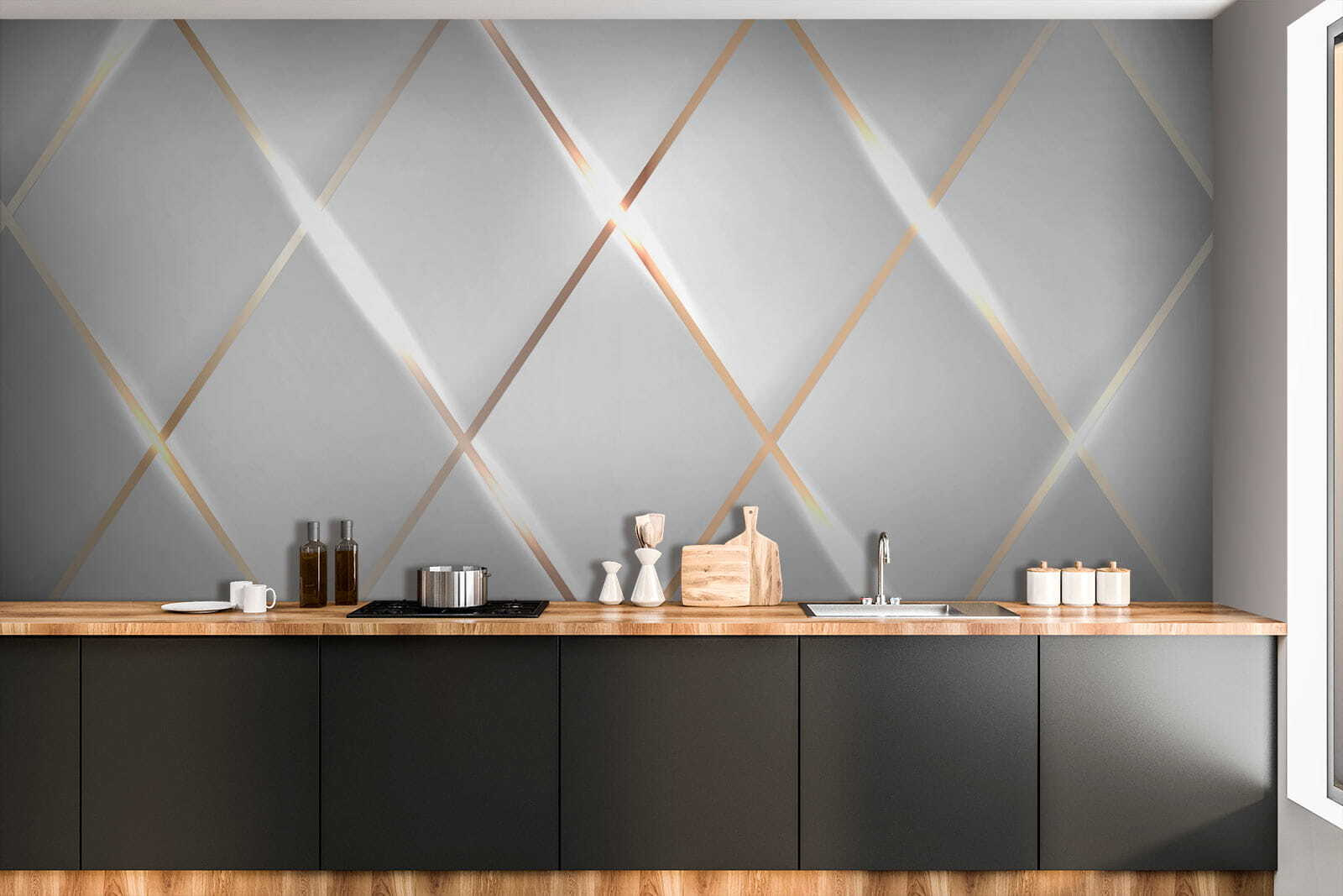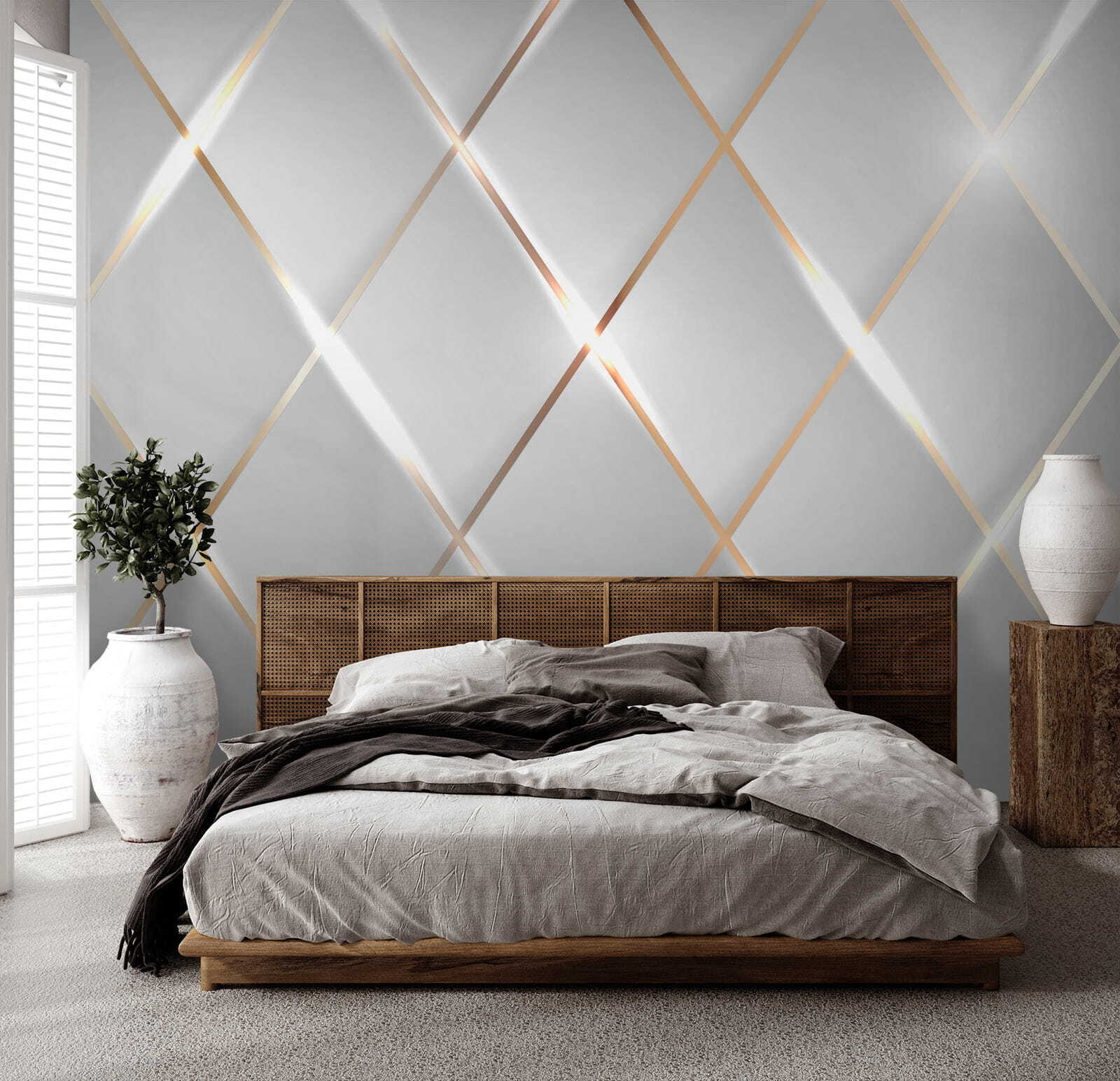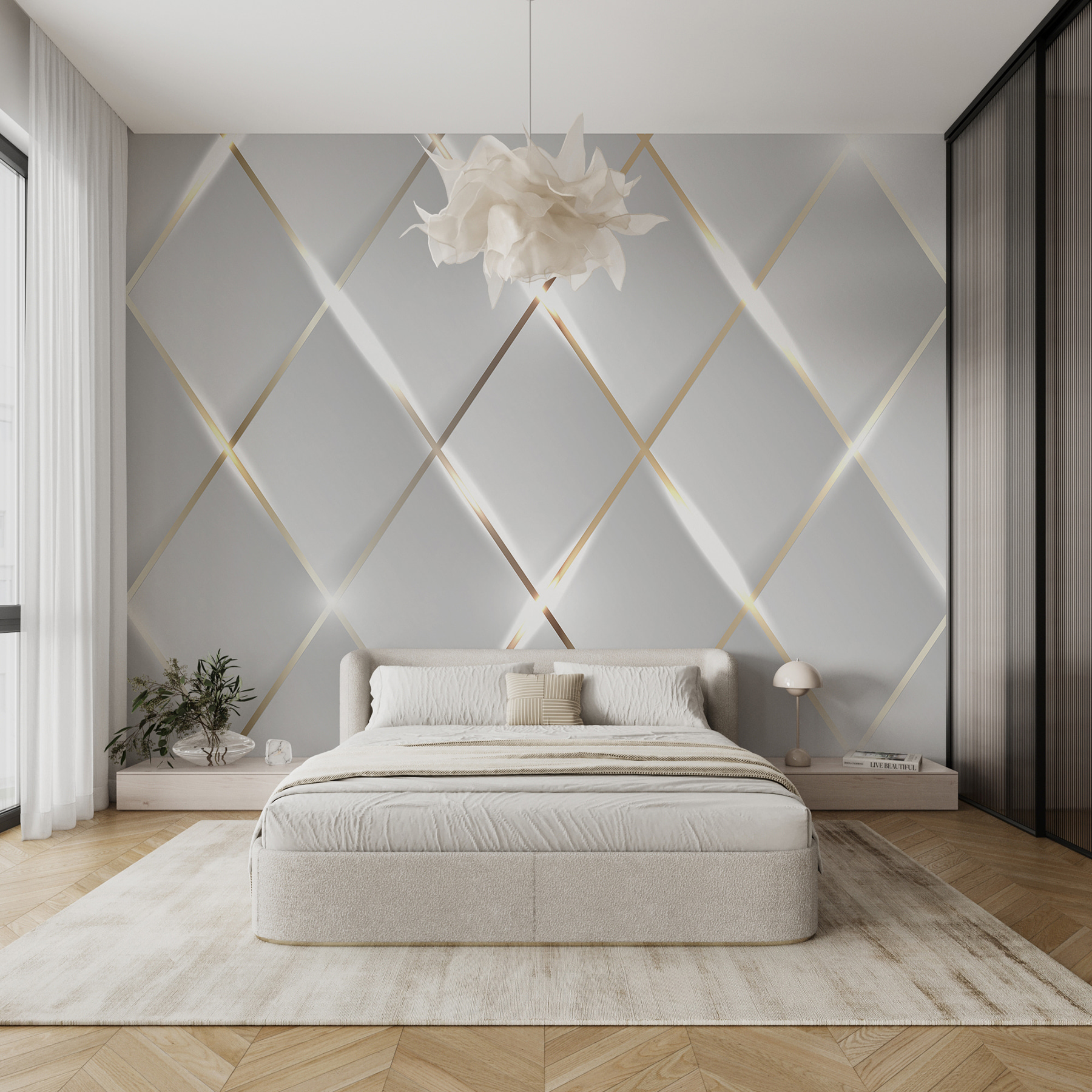 Transformeer je ruimte met deze opvallende muurschildering, de “Fotobehang Shimmering Symmetrical Light Reflections”. Stel je voor dat je een kamer binnenloopt waar elke blik aanvoelt als een dans van licht en schaduw – hoe leuk is dat? Het geometrische patroon speelt met je verbeelding en creëert een gevoel van diepte dat je naar binnen trekt. Perfect voor een woonkamer of een gezellig hoekje, het brengt een vleugje elegantie dat zowel modern als warm aanvoelt. Het is alsof je een kunstwerk hebt dat tot je spreekt, waardoor een gewone muur een gespreksonderwerp wordt. Ga je gang, stel je gezellige avonden en heldere ochtenden voor met deze unieke achtergrond die het dagelijkse leven verlicht. Wat vind je daarvan?