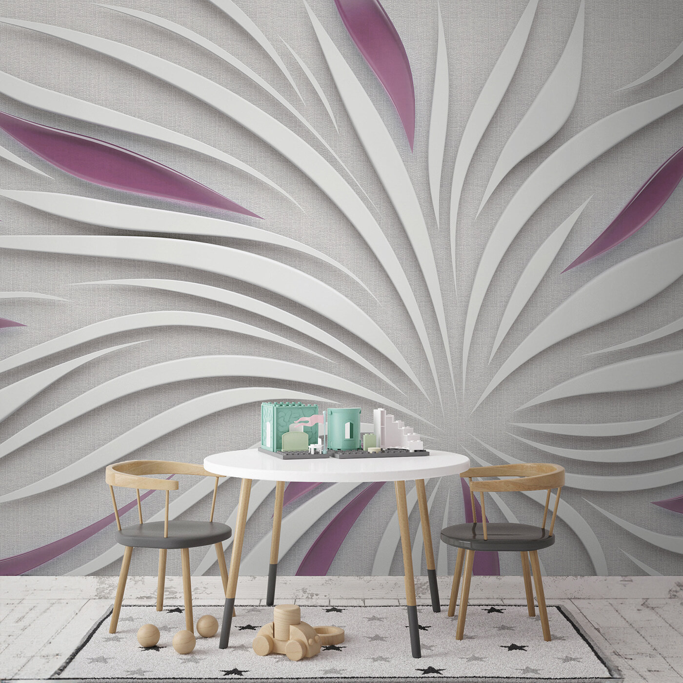 Stel je eens voor: je kamer wordt omgetoverd tot een serene, moderne kunstgalerie. Deze muurschildering, met zijn witte en paarse wervelingen, voelt aan als een zacht briesje dat over een ongerept sneeuwveld glijdt. Het is modern, maar met een koele, rustgevende sfeer. Een beetje zoals ontspannende golven. Hang hem aan je muur en boem, instant zen! Wil je een bloemmotief maar dan iets abstracter? Met dit ontwerp zit je goed. Gemakkelijk te verwijderen en te plakken, dus geen stress. Het is net alsof je een beetje schoonheid van buiten naar binnen brengt zonder de allergieën. Maak je klaar om elke dag creativiteit en chill vibes in te ademen.