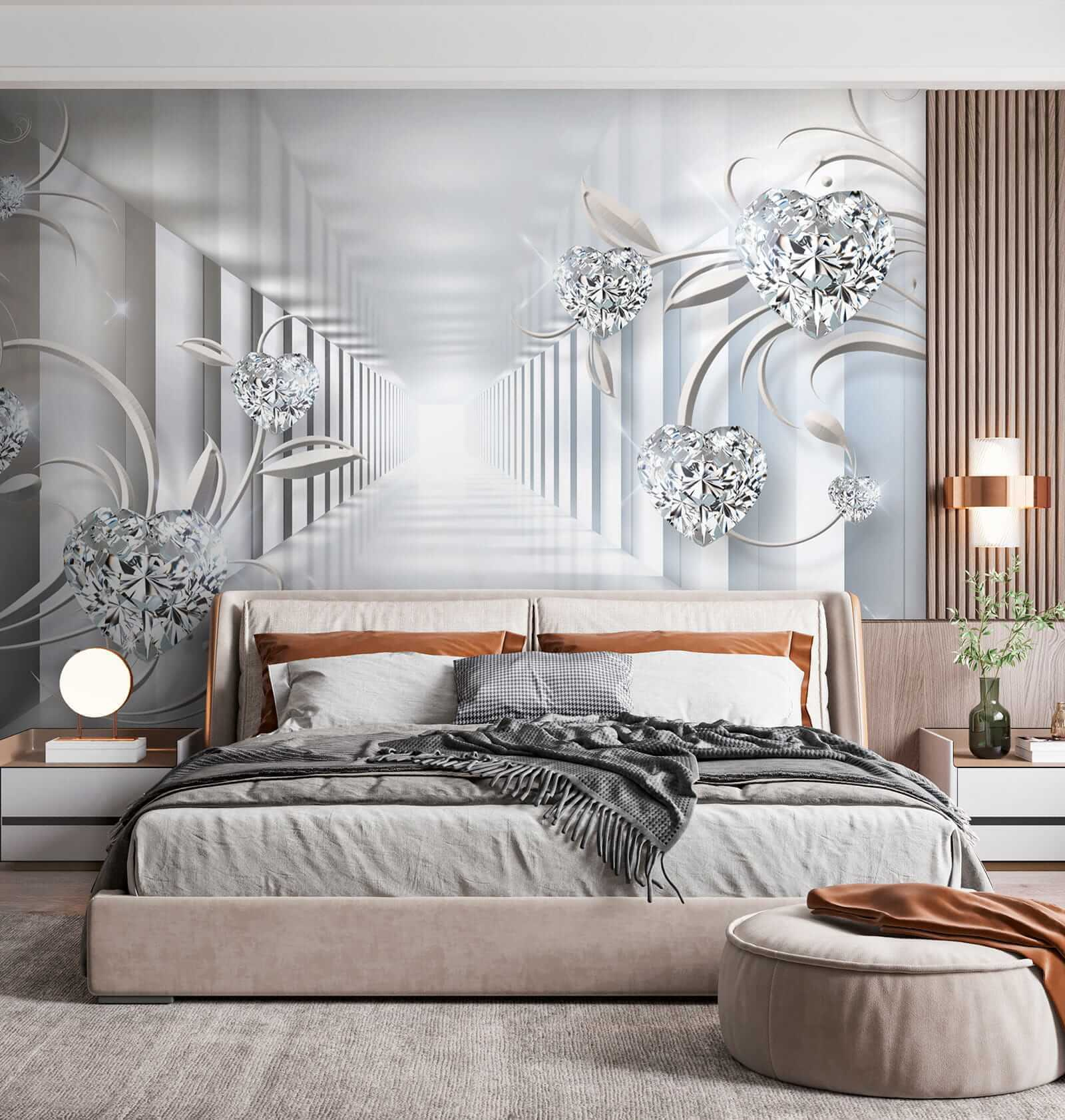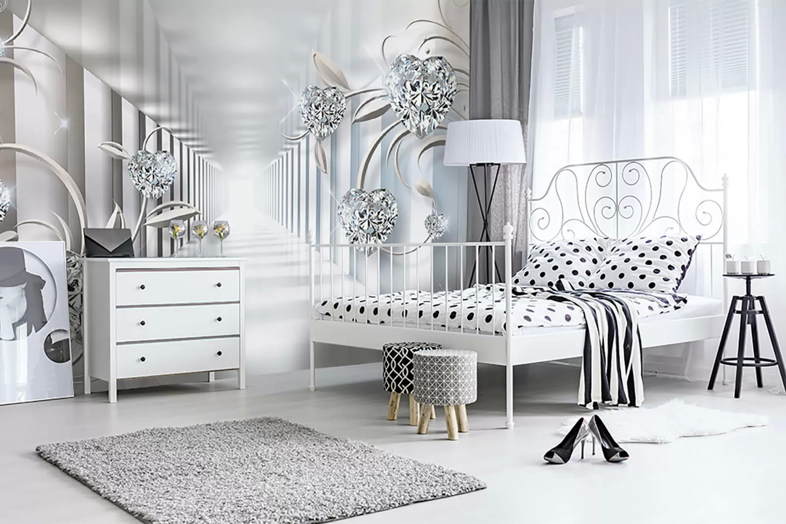Tover elke ruimte om in een dromerige oase met de Fotobehang Diamond in the Shape of a Heart. Deze muurschildering brengt een vleugje eigenzinnigheid en romantiek en is daarom perfect voor slaapkamers, woonkamers of andere plekken die wel een vleugje creativiteit kunnen gebruiken. Stel je voor dat je de kamer binnenloopt en begroet wordt door die prachtige hartvormen die dansen tussen zachte wijnranken. Het is alsof de muren je een warme knuffel geven. Het 3D-effect trekt je naar binnen en creëert een gevoel van diepte dat je uitnodigt om deze magische wereld te verkennen. Perfect voor mensen die houden van een beetje flair en het toch gezellig willen houden. Het is een heerlijke keuze voor iedereen die op zoek is naar een ruimte die helemaal van hem is.