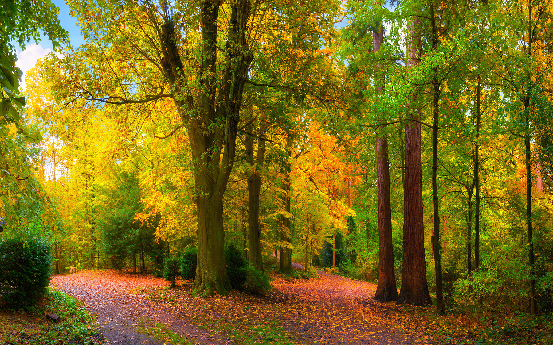 1 beoordeling voor Fotobehang Kleurrijk herfstbos met kronkelend pad