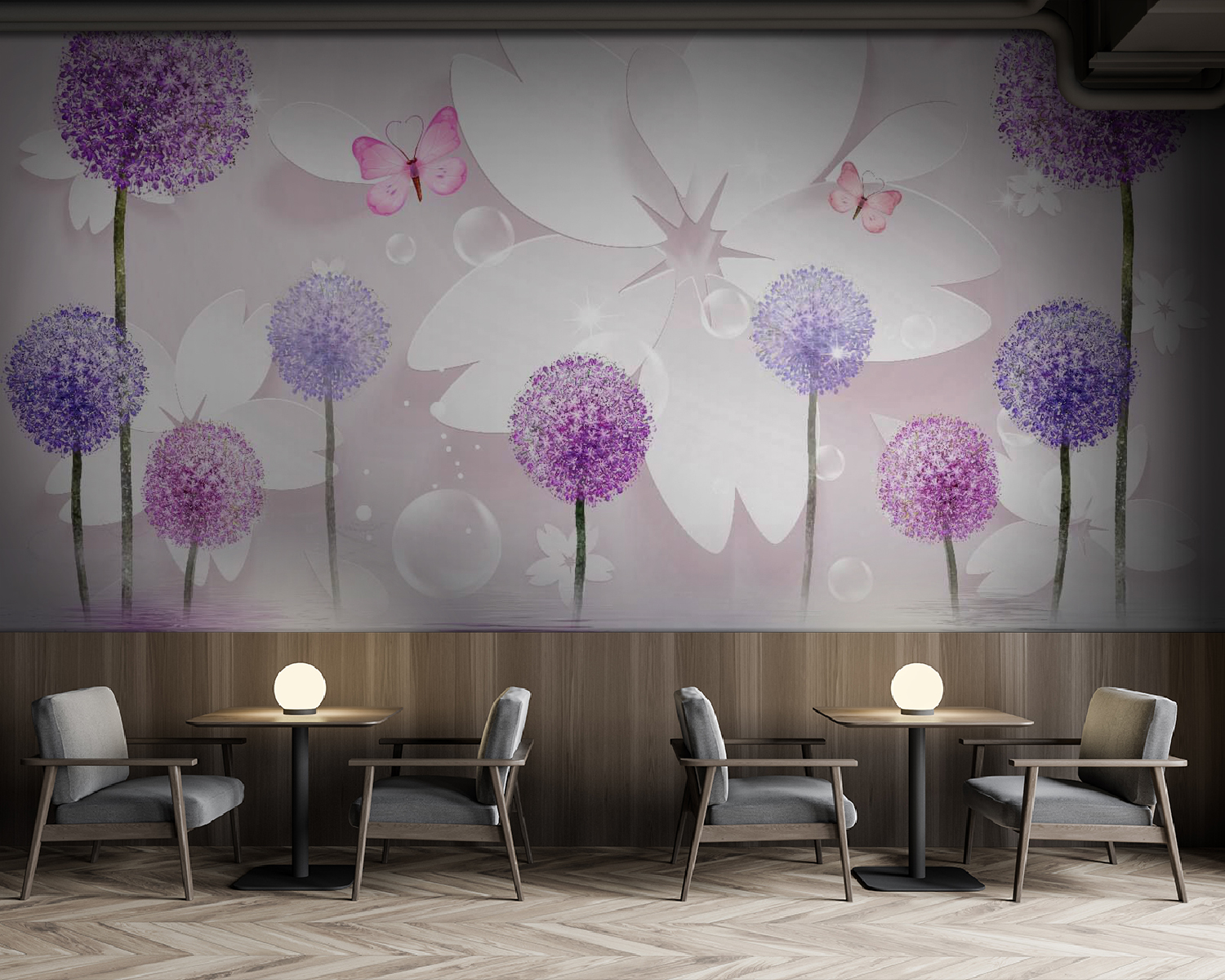 Breng het buitenleven naar binnen met de “Muurschilderingen Paarse bloemen en vlinders in harmonie!”. Deze muurschildering is alsof je een serene tuin binnenstapt waar grillige vlinders rond levendige paarse bloemen dansen. Stel het je voor – elke keer dat je de kamer binnenloopt, word je begroet door dit vredige tafereel dat zowel kalmerend als opbeurend is. De zachte tinten en delicate details maken het een opvallend middelpunt voor elke ruimte.