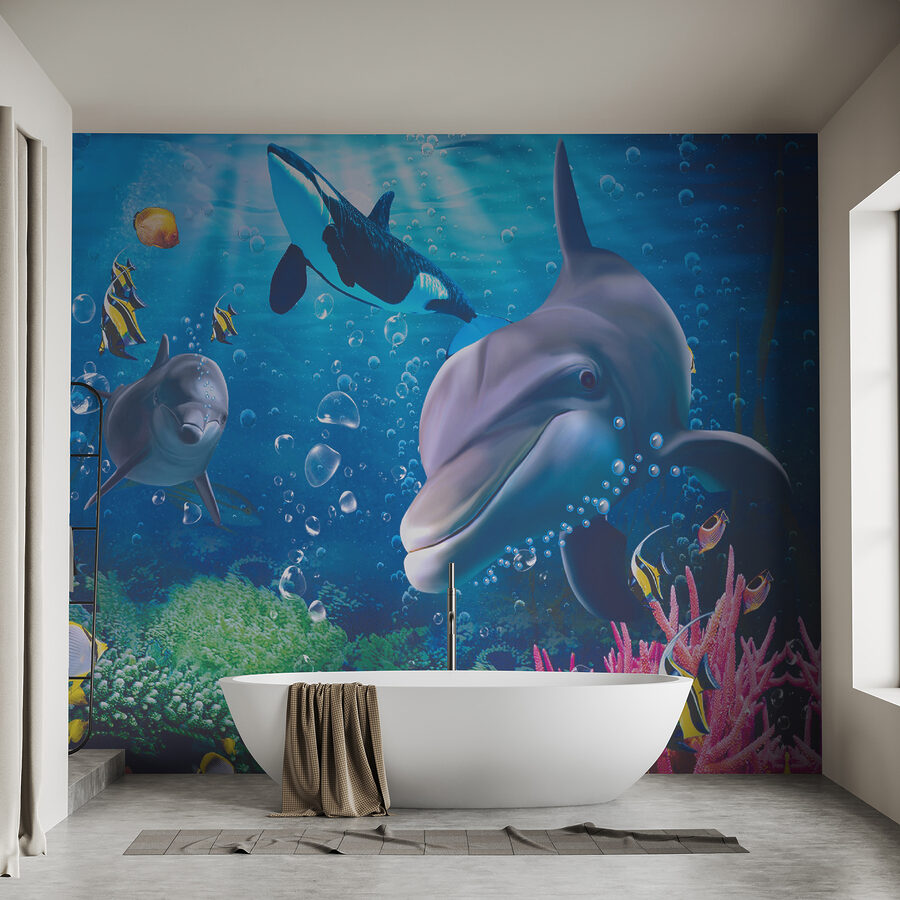 Duik in een wereld vol wonderen met deze levendige muurschildering met schildpadden die vrolijk rondzwemmen in een levendige onderwaterwereld. Stel je voor dat je kijkt naar speelse dolfijnen en kleurrijke vissen die door koraalriffen zwemmen, waardoor een eenvoudige kamer verandert in een magische wateroase. Het is alsof je een geheim onderwaterparadijs op je muur hebt, dat vreugde en creativiteit opwekt. Perfect voor kinderen, of iedereen die jong van hart is, het voegt een vleugje plezier en intrige toe. Elke blik kan inspireren tot een dagdroom over oceaanavonturen en de mysteries van het diepe blauw. Wie zou dat niet willen? Perfect speels, het verandert elke ruimte in een heerlijke ontsnapping. Perfect voor een kinderkamer, speelkamer of zelfs een knus hoekje waar je tot rust kunt komen na een lange dag.