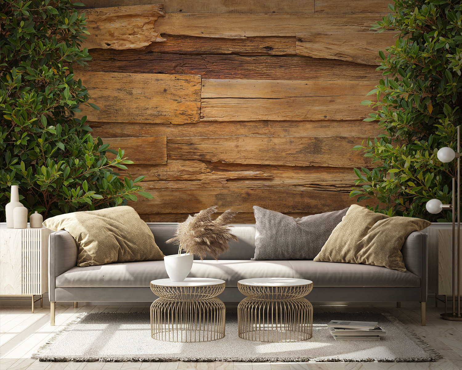 Gasten vragen zich misschien af of je de muur zelf hebt gemaakt, zo overtuigend is hij! Het is perfect om diepte en textuur toe te voegen – een beetje zoals je eigen persoonlijke toevluchtsoord in het bos – zonder de splinters. Installeer hem in de slaapkamer voor dat knusse, warme gevoel of in je kantoor voor een unieke achtergrond die zeker een gesprek op gang zal brengen. Het draait allemaal om het creëren van een ruimte die zowel vintage als fris aanvoelt – een beetje stoere charme en veel hart. Geniet van het buitenleven, zonder de insecten!