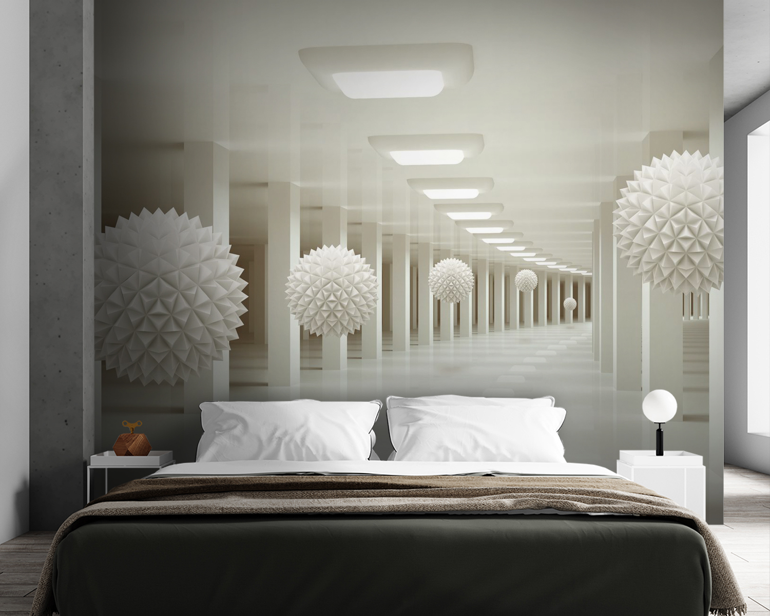 Ooit het gevoel willen hebben dat je in een futuristische kunstgalerie woont? De “Fotobehang White Sphere with Triangles” geeft je precies die sfeer! Stel je dit eens voor in je gezellige woonkamer of een strakke kantoorruimte – een parade van 3D witte bollen die sereen zweven te midden van een geometrisch wonderland. Het is alsof je een andere dimensie binnenstapt!