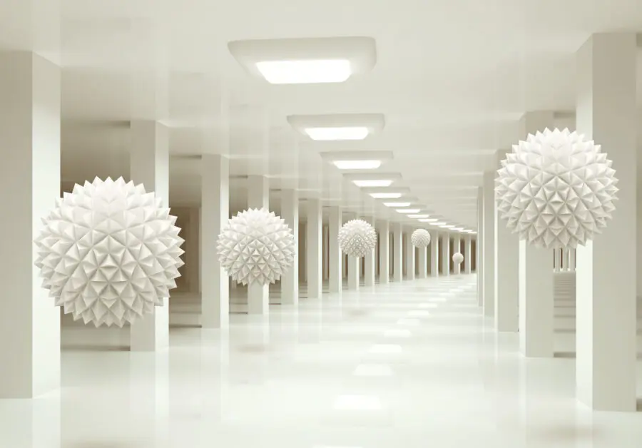 Ooit het gevoel willen hebben dat je in een futuristische kunstgalerie woont? De “Fotobehang White Sphere with Triangles” geeft je precies die sfeer! Stel je dit eens voor in je gezellige woonkamer of een strakke kantoorruimte – een parade van 3D witte bollen die sereen zweven te midden van een geometrisch wonderland. Het is alsof je een andere dimensie binnenstapt!