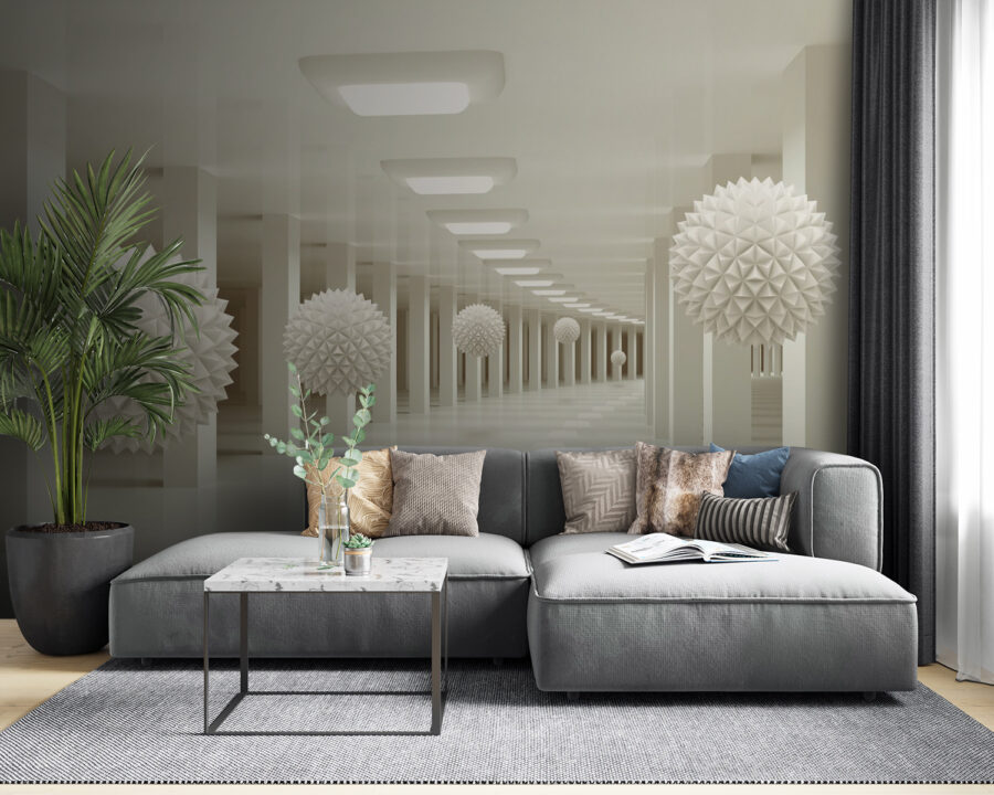 Ooit het gevoel willen hebben dat je in een futuristische kunstgalerie woont? De “Fotobehang White Sphere with Triangles” geeft je precies die sfeer! Stel je dit eens voor in je gezellige woonkamer of een strakke kantoorruimte – een parade van 3D witte bollen die sereen zweven te midden van een geometrisch wonderland. Het is alsof je een andere dimensie binnenstapt!