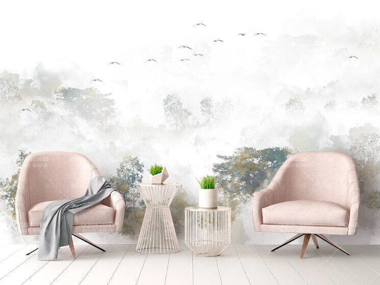 Transformeer elke kamer met deze betoverende muurschildering van vogels die sierlijk over mistige bomen zweven. Het is alsof je een stukje natuur in huis haalt. Stel je voor dat je wakker wordt met een kopje koffie in je hand en je wordt begroet door de zachte herinnering dat de wereld er is – kalm en sereen. De zachte kleuren en dromerige sfeer creëren een perfecte achtergrond voor gezellige avonden of levendige bijeenkomsten. Bovendien kan het een gesprek op gang brengen; wie wil er nou niet praten over de schoonheid van de natuur? Hang het op in je woonkamer of werkruimte en kijk hoe het de stemming verhoogt als een frisse wind!