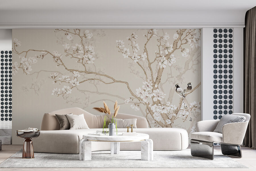 2 beoordelingen voor Fotobehang Vogels neergestreken op bloeiende takken