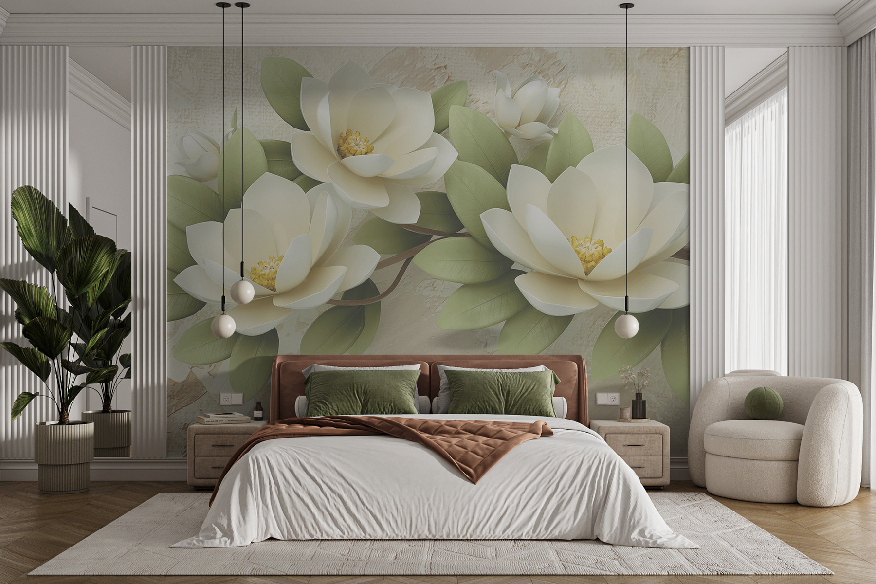 Het 3D-effect van deze muurschildering springt er echt uit en voegt diepte en leven toe aan je muren – eerlijk gezegd voelt het bijna alsof je de bloemblaadjes kunt aanraken. En die zachtgroene bladeren? Gewoon rustgevend. Stel je dit eens voor in je woonkamer of slaapkamer… misschien zelfs in een hal! Mensen zouden binnenkomen en meteen die ontspannende, stijlvolle sfeer voelen.