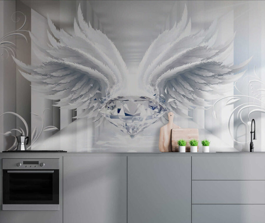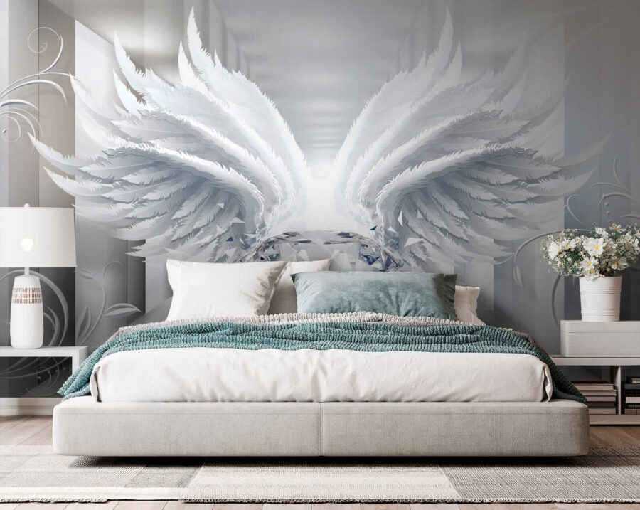 Verander elke kamer in een dromerige ontsnapping met deze grillige muurschildering met een majestueus paar vleugels dat een stralend middelpunt wiegt. Het is als een knuffel voor je muren – echt waar! Het delicate ontwerp geeft een gevoel van lichtheid, waardoor ruimtes luchtig en open aanvoelen. Stel je voor dat je wakker wordt met deze serene schoonheid of dat je een gezellige bijeenkomst hebt waar de gasten de kunst kunnen bewonderen. Perfect om persoonlijkheid toe te voegen zonder de ruimte te overweldigen, nodigt deze muurschildering uit tot dagdromen en inspireert tot creativiteit. Perfect voor mensen met een grillig hart.