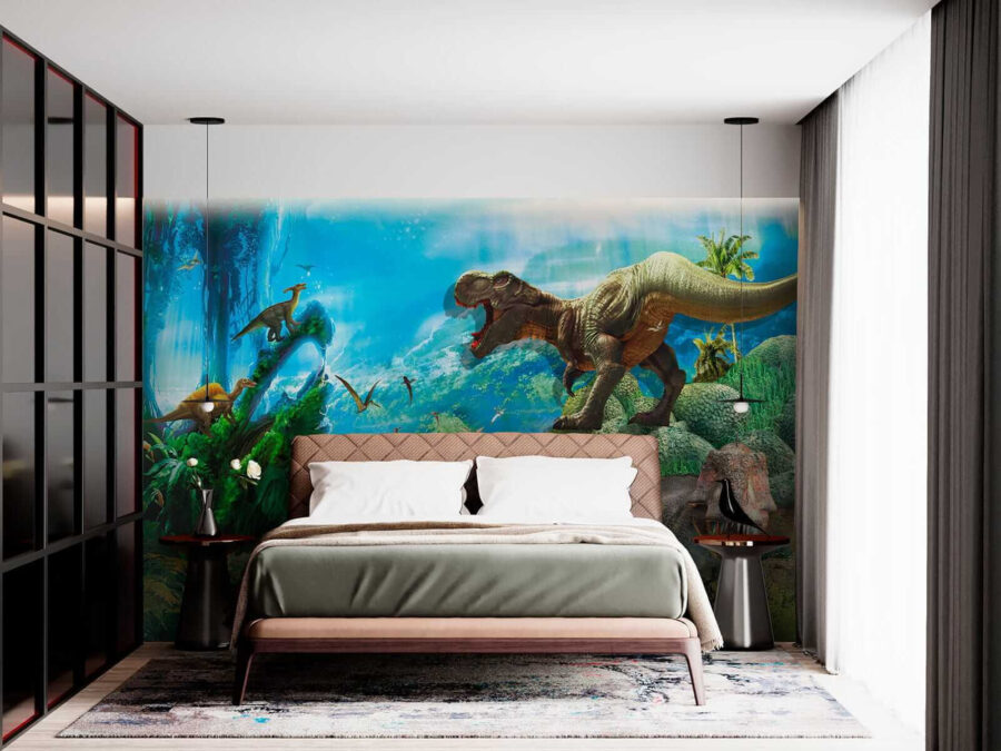 Stel je voor dat je elke keer dat je je kamer binnenloopt een prehistorisch wonderland binnenstapt! Deze muurschildering “Dinosaurus met scherpe tanden” is een levendige uitbarsting uit het verleden – perfect voor kinderen die van dino’s houden of voor iedereen die zich sterk verbonden voelt met deze prachtige wezens. De kleuren zijn waanzinnig, met weelderig groen en hemelsblauw waardoor je bijna de jungle hoort ruisen… of het gebrul van een T. Rex in de verte. Het is net je eigen Jurassic Park, zonder de risico’s! Serieus, het installeren van deze muurschildering kan precies het juiste middel zijn om je verbeelding te prikkelen en een leuke, oogverblindende flair aan elke ruimte toe te voegen. Perfect voor een kinderkamer of een speelse woonkamer, het is meer dan alleen decor – het is een avontuur in de maak!
