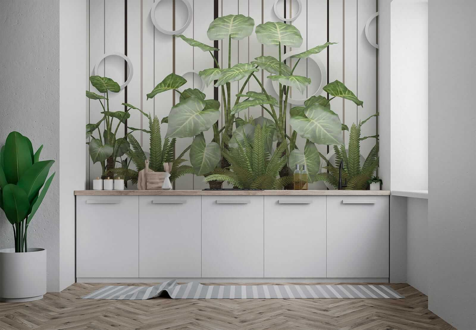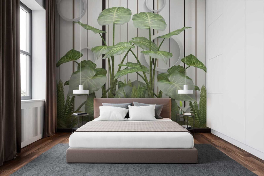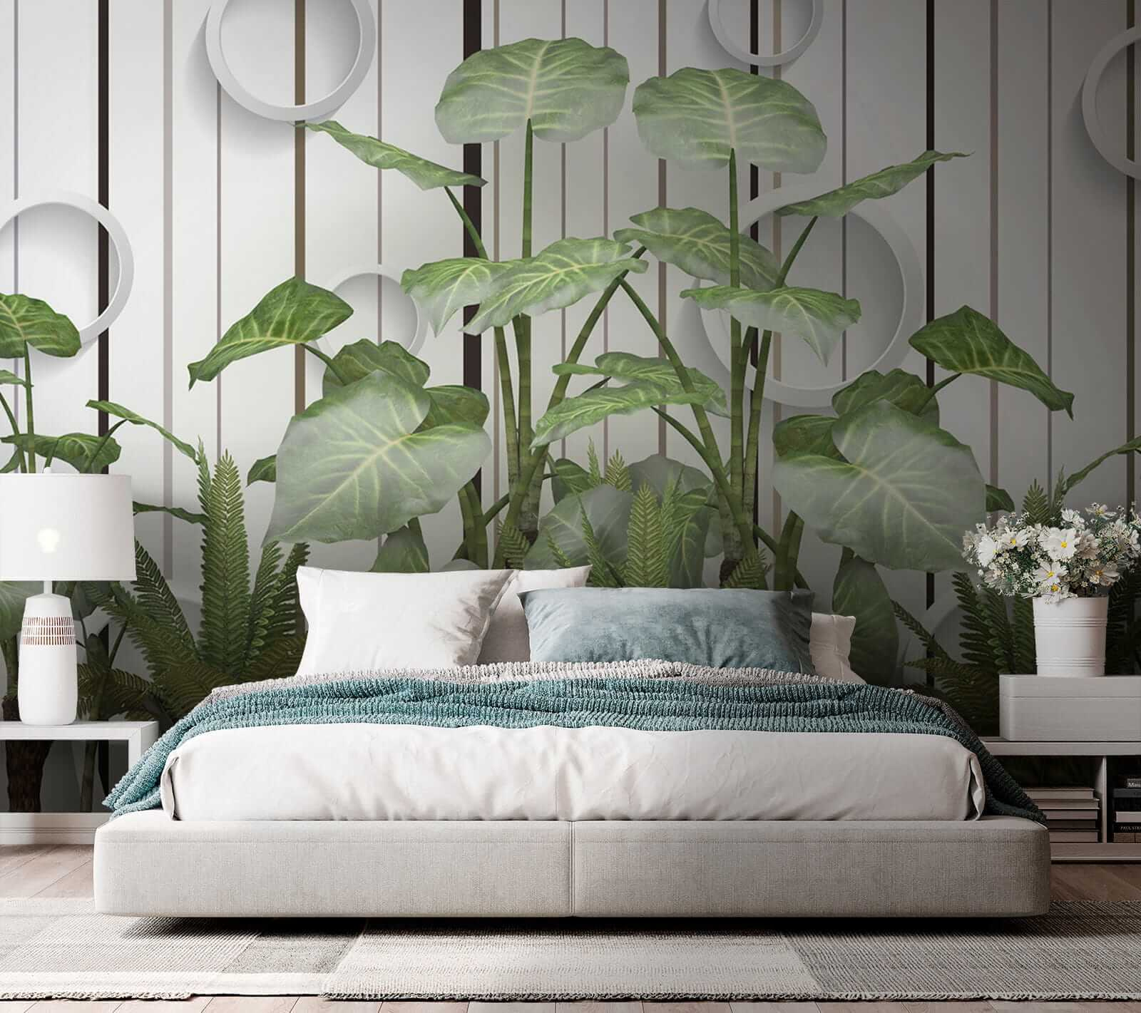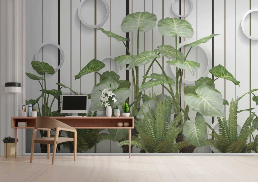 Stel je voor: muren bedekt met levendige, weelderige bladeren die afsteken tegen die strakke strepen… serieus, het is alsof je een vleugje jungle in je woonkamer hebt zonder de vochtigheid! Deze muurschildering “Weelderige bladeren tegen een gestreepte muur” combineert moeiteloos de rustgevende essentie van de natuur met een moderne twist. Of je nu een plantenliefhebber bent met een lichtelijk zwarte duim of gewoon hunkert naar een vleugje van het buitenleven, deze muurschildering is er voor jou – water geven is niet nodig. Stel je voor dat je op de bank ligt en je voelt die frisse, groene sfeer… het brengt de hele kamer tot leven! Bovendien voegen die coole ronde accenten een eigenzinnige, 3D flair toe – over opvallend gesproken. Het is perfect om een beetje charme en rust in elke ruimte te brengen. Het is niet zomaar een muurschildering; het is een conversatiestarter, een sfeerversterker, een stukje bladerparadijs. 🌿