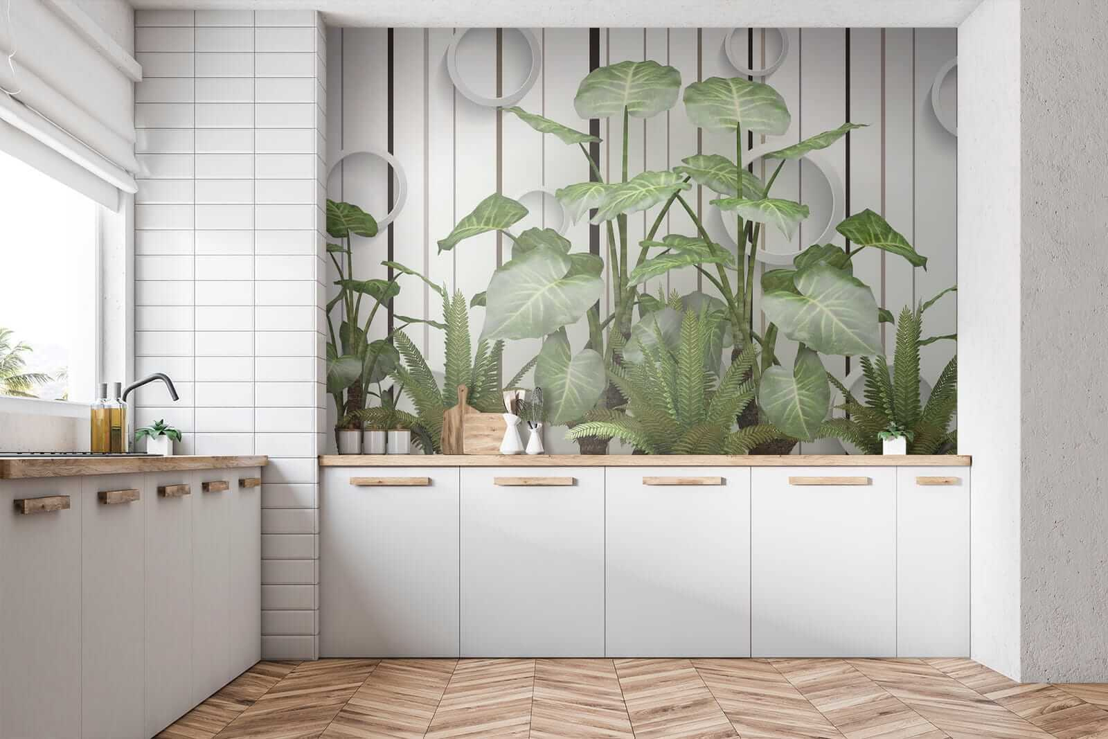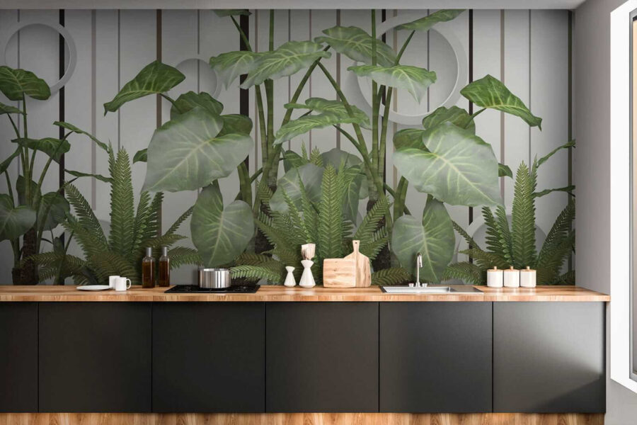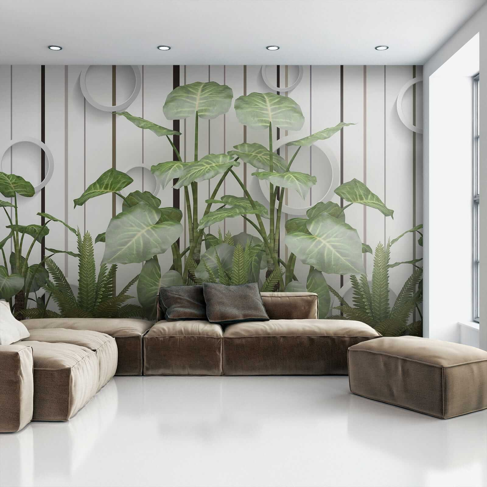 Stel je voor: muren bedekt met levendige, weelderige bladeren die afsteken tegen die strakke strepen… serieus, het is alsof je een vleugje jungle in je woonkamer hebt zonder de vochtigheid! Deze muurschildering “Weelderige bladeren tegen een gestreepte muur” combineert moeiteloos de rustgevende essentie van de natuur met een moderne twist. Of je nu een plantenliefhebber bent met een lichtelijk zwarte duim of gewoon hunkert naar een vleugje van het buitenleven, deze muurschildering is er voor jou – water geven is niet nodig. Stel je voor dat je op de bank ligt en je voelt die frisse, groene sfeer… het brengt de hele kamer tot leven! Bovendien voegen die coole ronde accenten een eigenzinnige, 3D flair toe – over opvallend gesproken. Het is perfect om een beetje charme en rust in elke ruimte te brengen. Het is niet zomaar een muurschildering; het is een conversatiestarter, een sfeerversterker, een stukje bladerparadijs. 🌿