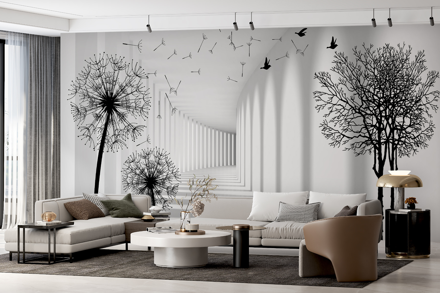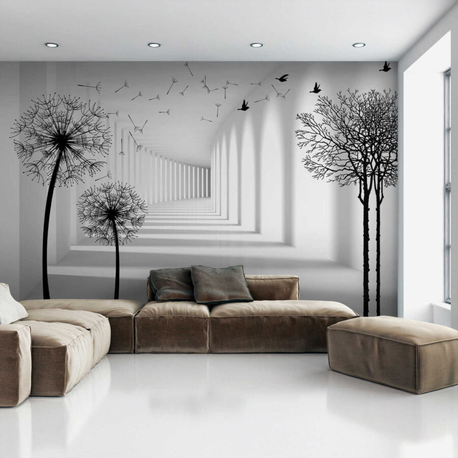 Stel je voor dat je een kamer binnenstapt en begroet wordt door de grillige dans van paardenbloemen! Deze muurschildering, getiteld “Black Silhouette of a Dandelion”, doet precies dat – het is alsof je een zachte, winderige dag binnenshuis vastlegt. De opvallende zwarte silhouetten tegen een heldere achtergrond creëren een prachtig contrast. Wat zo cool is, is hoe het de ruimte lijkt uit te strekken, waardoor elke kamer groter lijkt… en opener. Bovendien hebben die zwevende zaden iets rustgevends, toch? Het is bijna alsof je er een zacht briesje doorheen voelt waaien.
