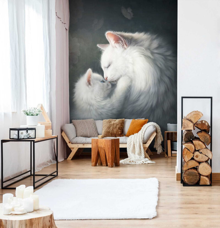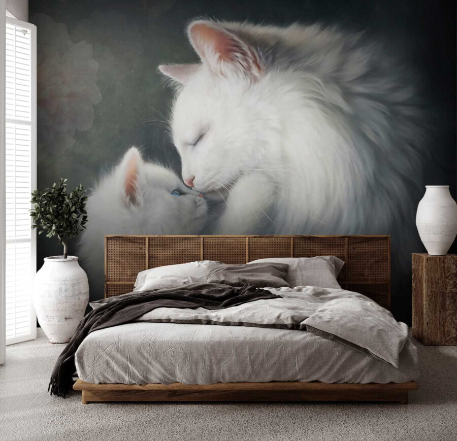 Oh, kijk eens naar deze twee pluizige schatjes! Deze muurschildering “Feline Affection at its Finest” zal harten doen smelten. Perfect voor elke kamer die een vleugje warmte en eigenzinnigheid nodig heeft – of het nu een kinderkamer, een gezellig leeshoekje of zelfs de woonkamer is. Stel je voor dat je elke dag wakker wordt met dit schattige duo… instant moodboost! En hé, wie kan dat zachte bont en die tedere knuffels weerstaan, toch?