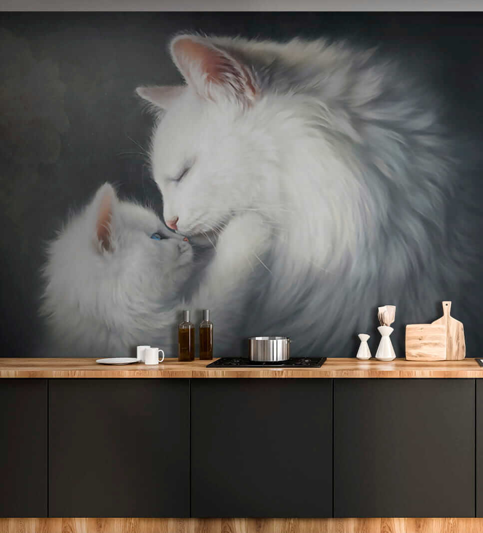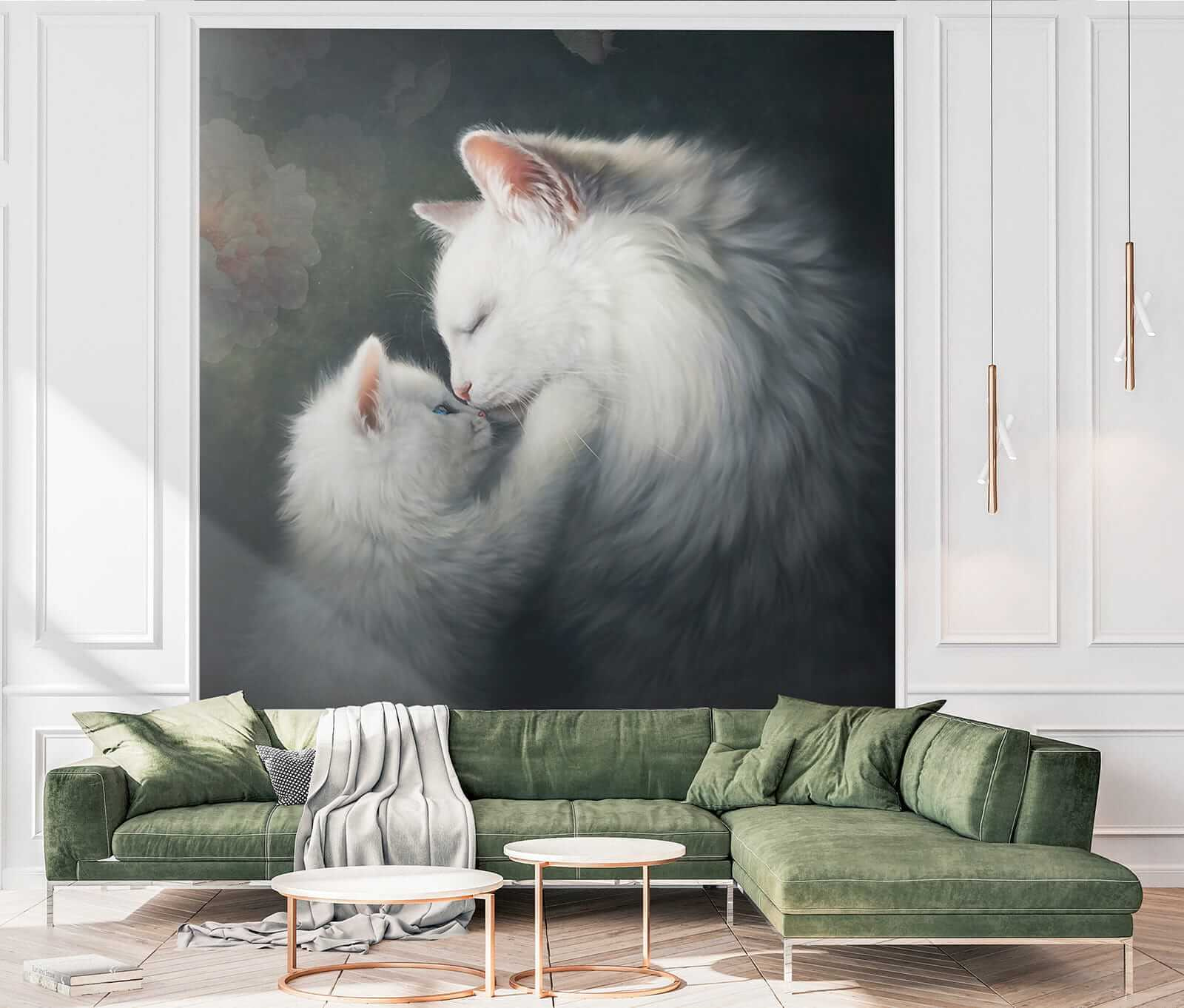 Oh, kijk eens naar deze twee pluizige schatjes! Deze muurschildering “Feline Affection at its Finest” zal harten doen smelten. Perfect voor elke kamer die een vleugje warmte en eigenzinnigheid nodig heeft – of het nu een kinderkamer, een gezellig leeshoekje of zelfs de woonkamer is. Stel je voor dat je elke dag wakker wordt met dit schattige duo… instant moodboost! En hé, wie kan dat zachte bont en die tedere knuffels weerstaan, toch?