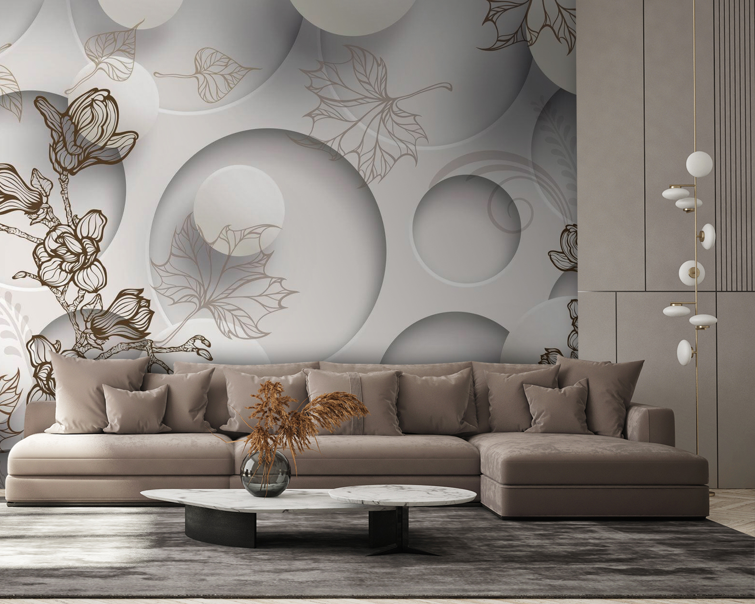 Transformeer je ruimte met deze grillige muurschildering die cirkels en bloemmotieven prachtig combineert. Het is alsof je een zacht tuinbriesje in huis haalt, zonder de pollen en niesbuien. Stel je voor dat je elke dag wakker wordt omringd door deze zachte, vloeiende vormen die je doen denken aan luie middagen in een zonnig park. Perfect om een vleugje persoonlijkheid toe te voegen aan elke kamer, waardoor wanddecoratie fris en levendig aanvoelt. Of het nu gaat om een gezellig hoekje of een levendige woonkamer, deze muurschildering zorgt voor vrolijkheid en gespreksstof – gegarandeerd een glimlach op het gezicht van je gasten. Laat de bloemen en cirkels dansen op je muren!