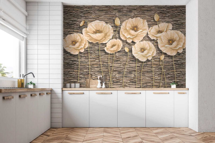 Fleur elke ruimte op met de charmante muurschildering “Klaprozen op een muur met structuur”. Stel je eens voor dat je een kamer binnenstapt waar zachte klaprozen zachtjes lijken te wuiven in een warme bries en de buitenlucht naar binnen halen. De neutrale tinten van deze bloemen spelen prachtig tegen een achtergrond die rustieke steen nabootst. Het is net alsof je een kleine tuin in je woonkamer hebt – perfect voor diegenen die hunkeren naar een vleugje natuur zonder het vuil. Stel je eens voor dat je vrienden ontvangt; ze zullen worden aangetrokken door die prachtige bloemen en misschien zelfs vragen of je van de ene op de andere dag in een meestertuinier bent veranderd. Deze muurschildering voelt levendig aan en geeft elke kamer een moeiteloze, gracieuze uitstraling. Verander je muren in een serene ontsnapping – wat is er beter dan dat?