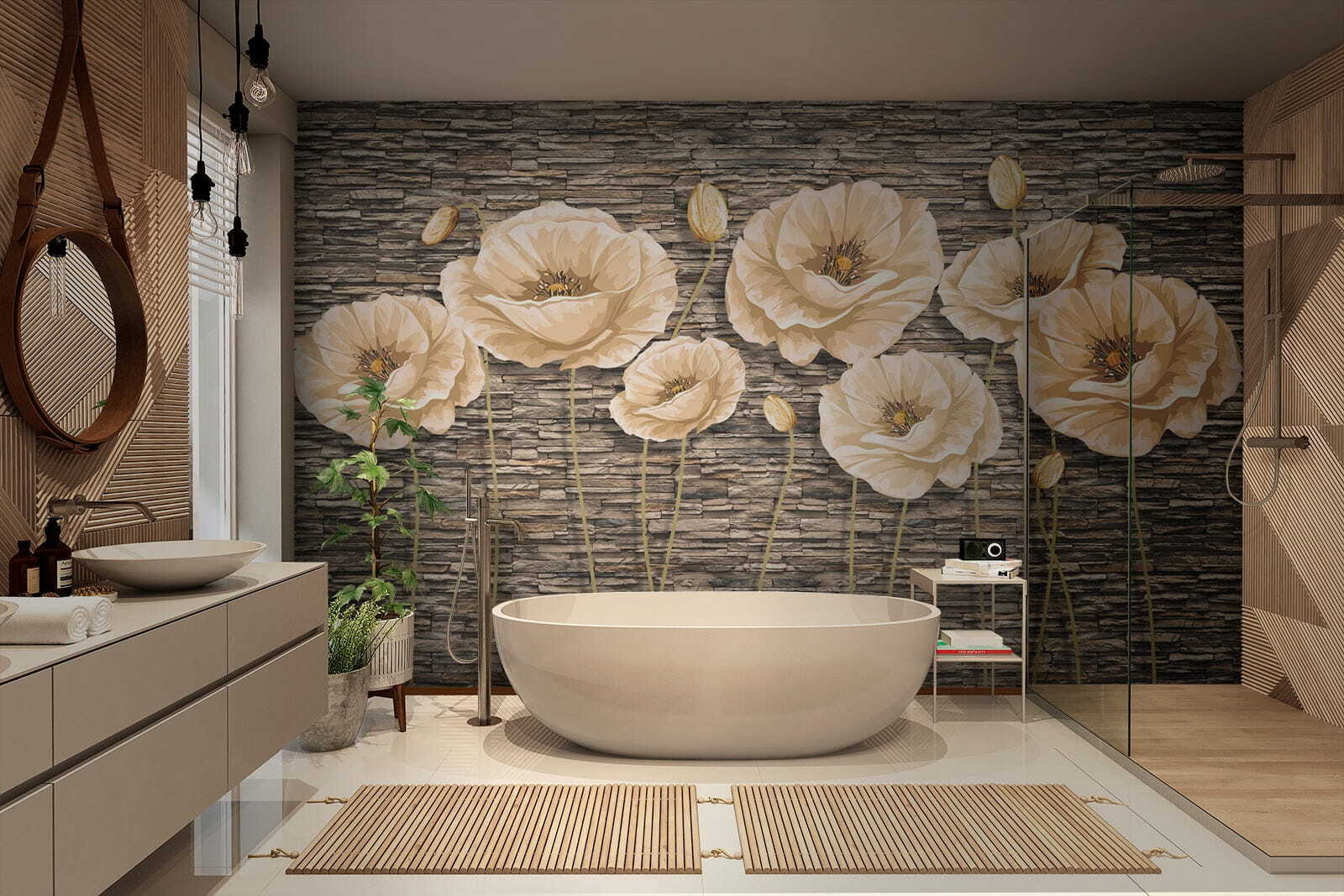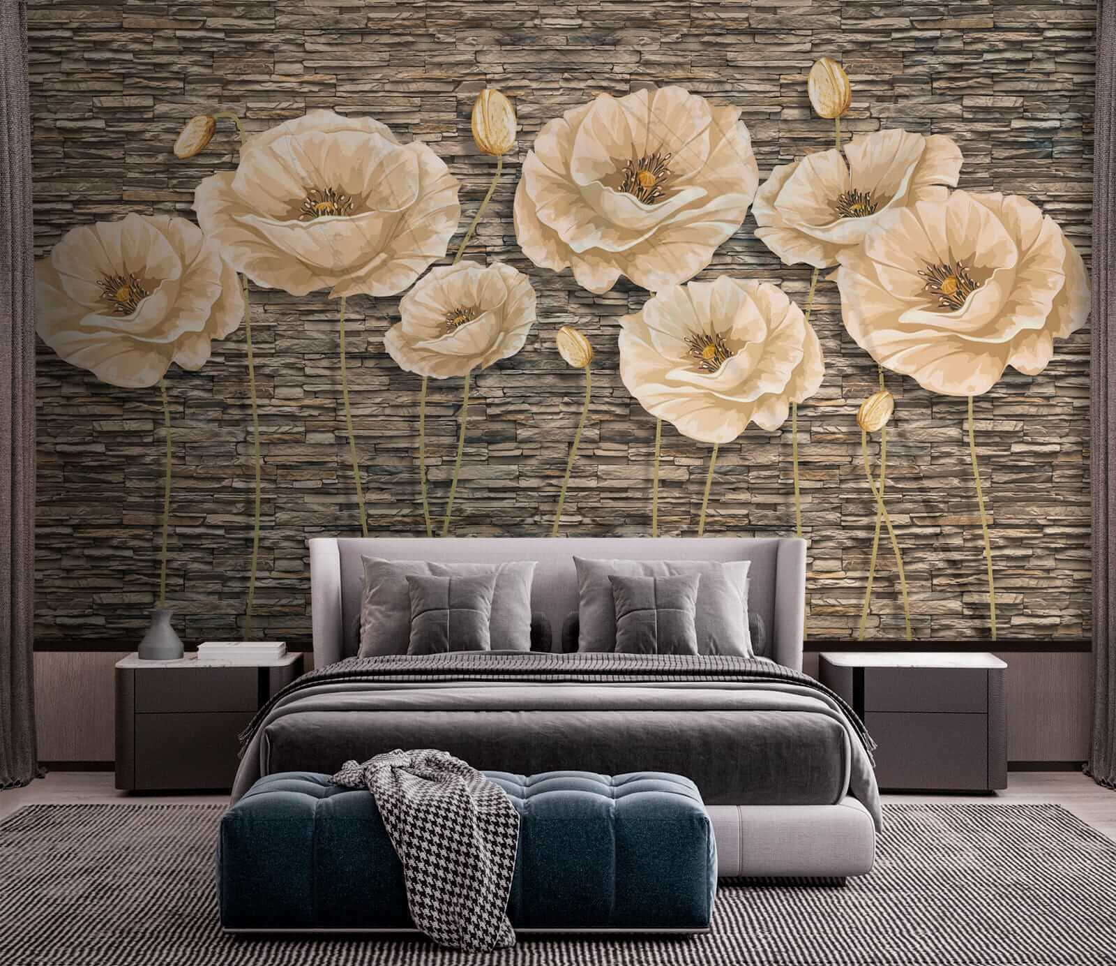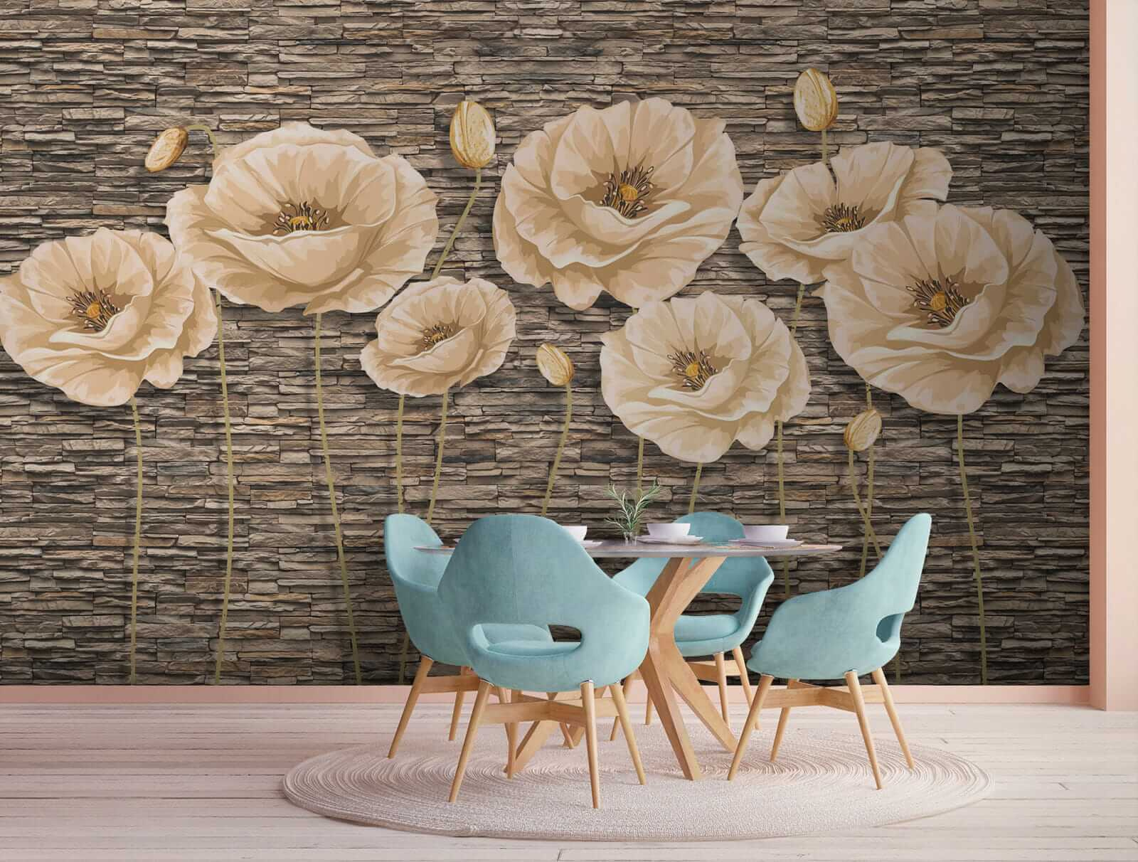 Fleur elke ruimte op met de charmante muurschildering “Klaprozen op een muur met structuur”. Stel je eens voor dat je een kamer binnenstapt waar zachte klaprozen zachtjes lijken te wuiven in een warme bries en de buitenlucht naar binnen halen. De neutrale tinten van deze bloemen spelen prachtig tegen een achtergrond die rustieke steen nabootst. Het is net alsof je een kleine tuin in je woonkamer hebt – perfect voor diegenen die hunkeren naar een vleugje natuur zonder het vuil. Stel je eens voor dat je vrienden ontvangt; ze zullen worden aangetrokken door die prachtige bloemen en misschien zelfs vragen of je van de ene op de andere dag in een meestertuinier bent veranderd. Deze muurschildering voelt levendig aan en geeft elke kamer een moeiteloze, gracieuze uitstraling. Verander je muren in een serene ontsnapping – wat is er beter dan dat?