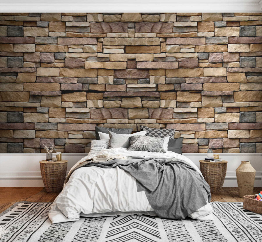 Verander elke kamer in een gezellig toevluchtsoord met dit stenen muurontwerp met patroon. Stel je voor dat je je woonkamer binnenloopt en de charme van rustieke elegantie over je heen voelt komen. Elke steen ziet eruit alsof hij een verhaal kan vertellen – misschien over oude kastelen of zonovergoten tuinen. Perfect voor wie een warme, uitnodigende sfeer wil zonder de hoge bouwkosten. Stel je voor: een regenachtige dag binnenshuis, gewikkeld in een deken, nippend aan thee terwijl je je prachtige muur bewondert. Het kan zelfs inspireren tot creatief dagdromen. Omarm de sfeer en laat je muren het woord doen!