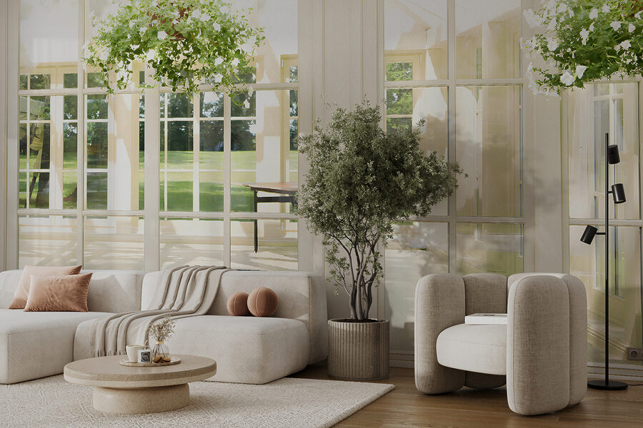1 beoordeling voor Fotobehang Zonovergoten kamer met hangplanten