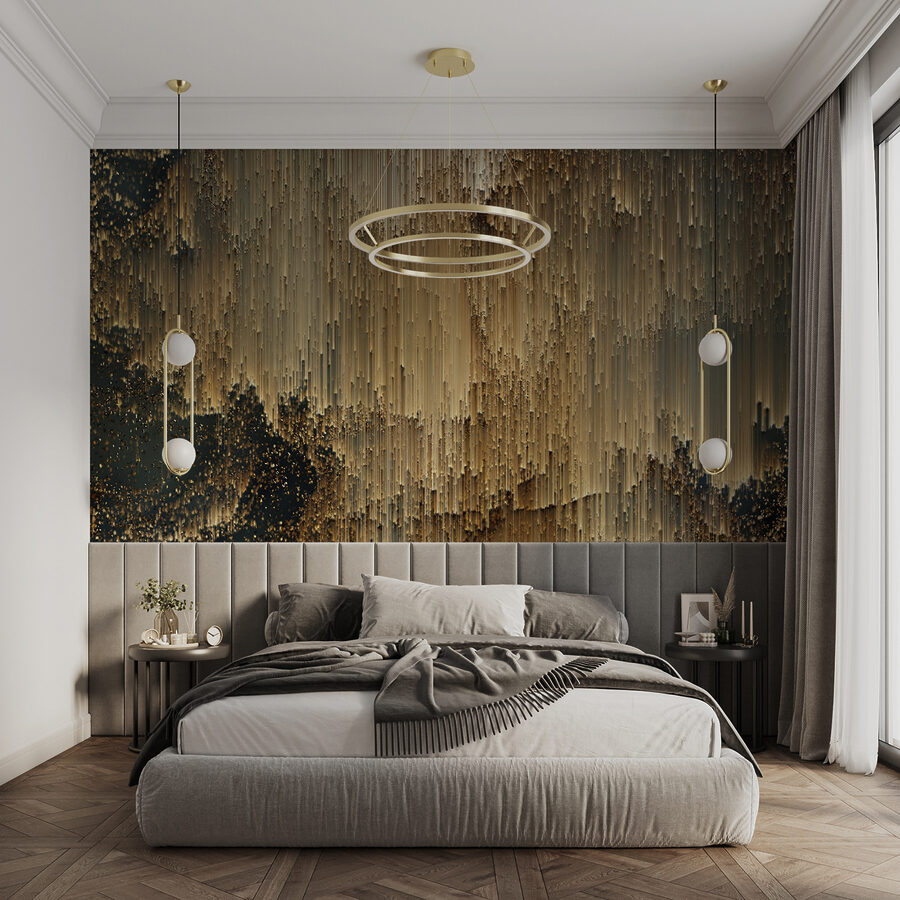 Een ruimte transformeren is nog nooit zo eenvoudig geweest met deze muurschildering met abstracte verticale lijnen en rijke texturen. Stelt u zich eens voor dat u een kamer binnenloopt en meteen een opkikker voelt, zoals een frisse wind. Het lijnenspel leidt het oog subtiel en creëert een stroom die zowel rustgevend als verkwikkend aanvoelt. Vrienden zullen zich afvragen of je een designgoeroe hebt ingehuurd. Perfect voor een gezellige woonkamer of een chique kantoor, het stimuleert creativiteit en gesprekken. Bovendien is het het soort prachtige achtergrond dat zelfs alledaagse taken een beetje stijlvoller maakt. Omarm de kunst om muren te laten zingen!