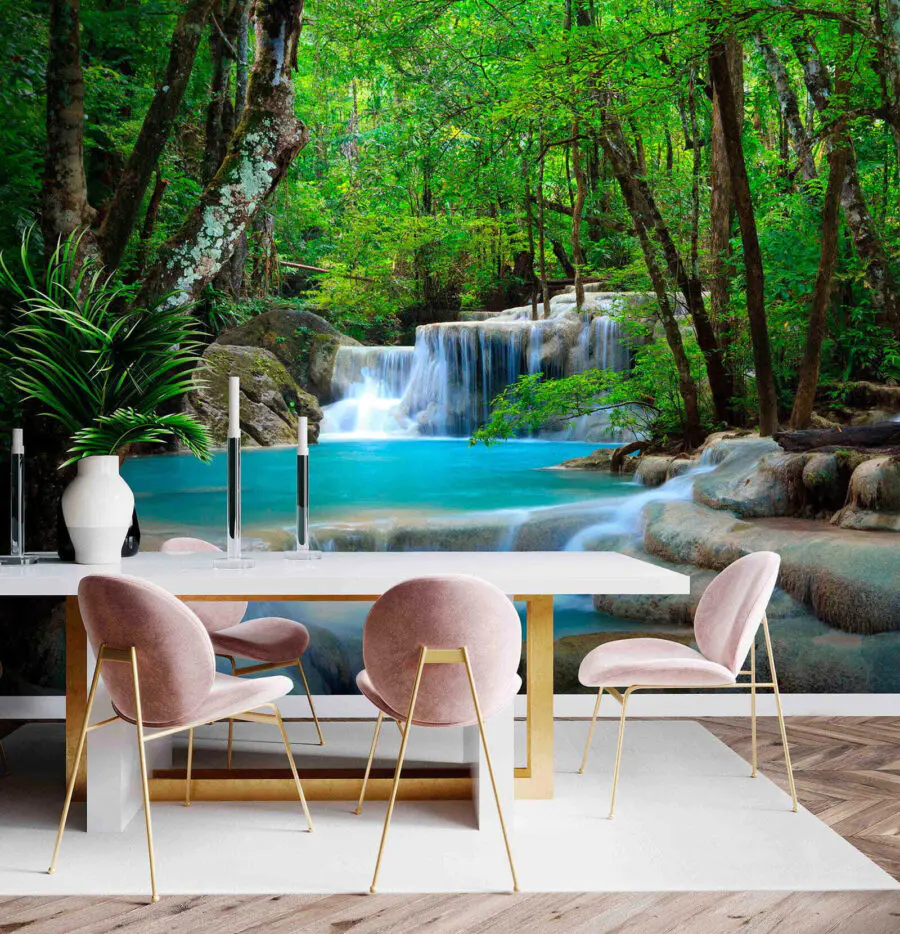 Stel je voor dat je elke ochtend wakker wordt met het rustgevende uitzicht op een waterval in een weelderig bos. Dat is wat deze muurschildering “Peaceful Waterfall” in je kamer brengt. Het is alsof je een venster hebt op de natuur zelf, midden in je kamer, om een vleugje rust aan je dag toe te voegen. Het is perfect om kleine ruimtes groter te laten lijken, als magie! Deze muurschildering zou prachtig staan in een woonkamer, slaapkamer of zelfs in een hal. Het heeft die 3D vibe waardoor je het zachte ruisen van het water bijna hoort. En de groene, blauwe en aardse tinten? Die zijn zo rustgevend.