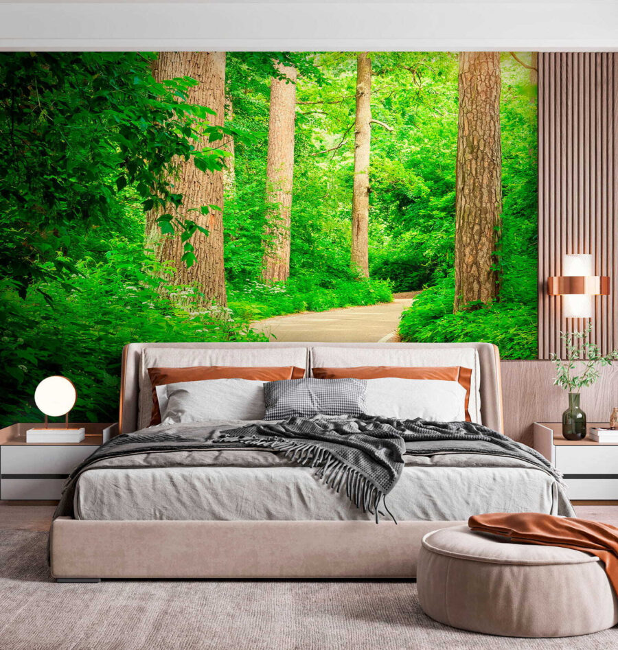Transformeer je ruimte met de serene schoonheid van “Sunlight Through Lush Green Forest”. Stel je voor dat je door een rustig bos loopt, waar het zonlicht door de levendige bladeren naar beneden valt en patronen op de grond creëert. Deze muurschildering is niet zomaar een muurdecoratie; het is een uitnodiging om rustig adem te halen. De frisse groentinten en het warme licht brengen een gevoel van rust terwijl ze dagdromen over natuurwandelingen en verborgen paden. Perfect voor een gezellig hoekje of die ene muur die wel wat extra liefde kan gebruiken, het voegt een vleugje leven toe dat zeker elke kamer zal opfleuren. Omarm de schoonheid van het buitenleven thuis!