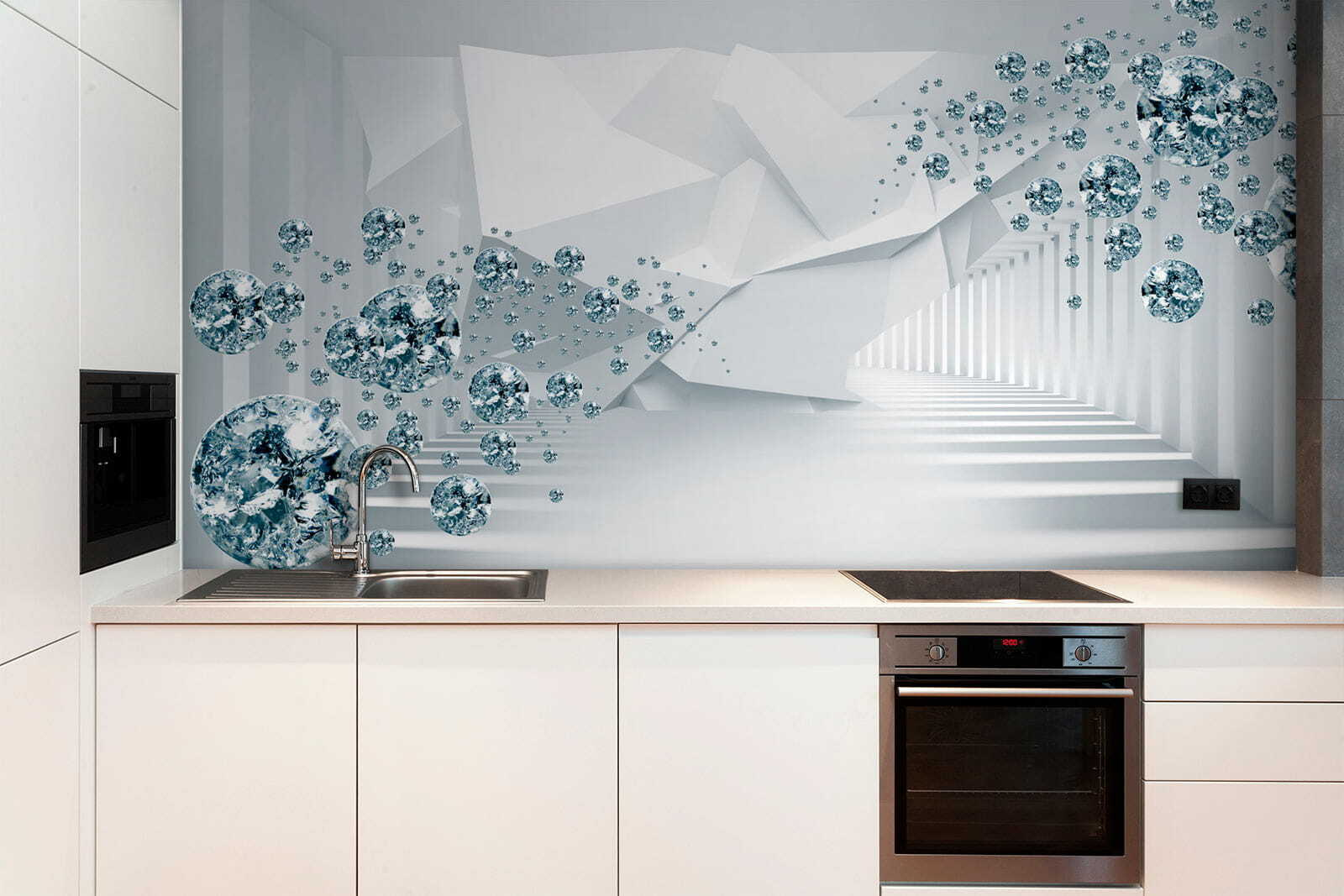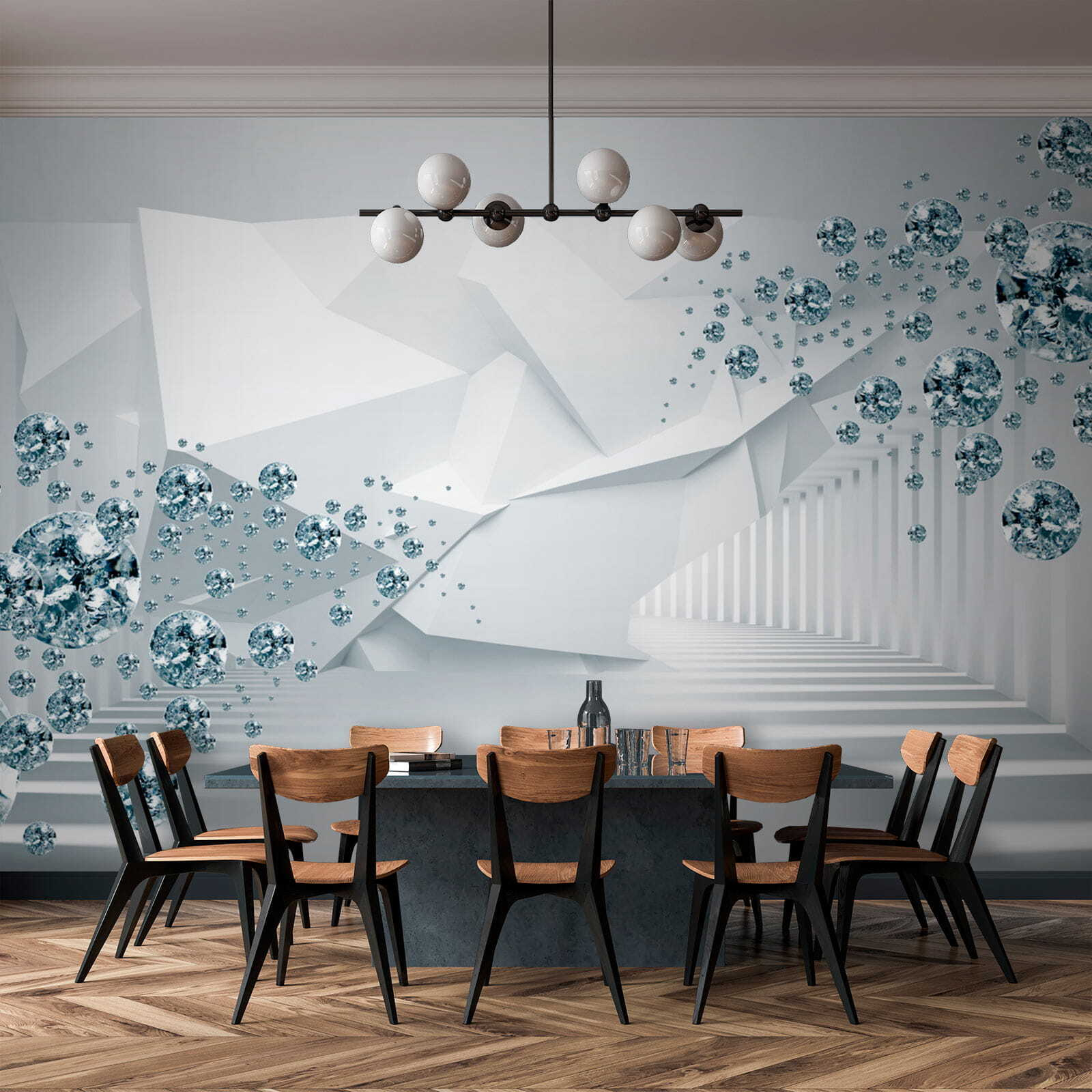 Stap in een weelderige droom met deze fascinerende muurschildering, “Zwevende edelstenen in een futuristische hal”. Stel je heldere ruimtes voor gevuld met die betoverende zwevende vormen, die een gevoel van verwondering creëren. Perfect voor iedereen die een saaie muur wil opfleuren of een gezellig hoekje extra flair wil geven. Er is iets bijna grilligs aan de manier waarop het speelt met licht en schaduw, waardoor het alledaagse een vleugje magie krijgt. Stel je een levendige bijeenkomst voor waar de gasten niet anders kunnen dan naar dit kunstwerk staren, gesprekken aanzwengelen en ontzag inboezemen. Wie zou daar niet van houden? Verander elke kamer in een verbluffende ontsnapping en zie hoe het elk moment een beetje leven inblaast!