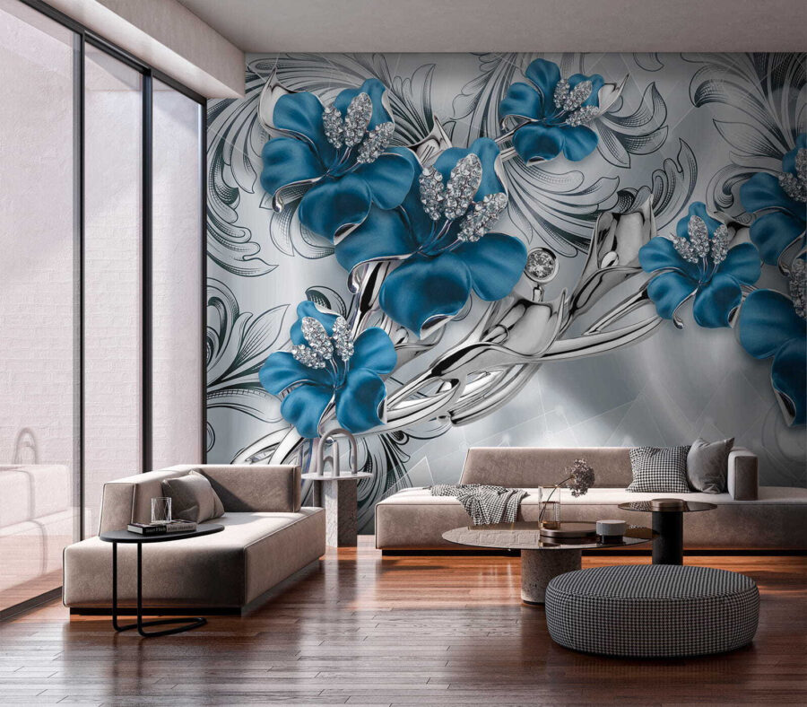 2 beoordelingen voor Fotobehang Sierlijke blauwe bloemen met kristallen