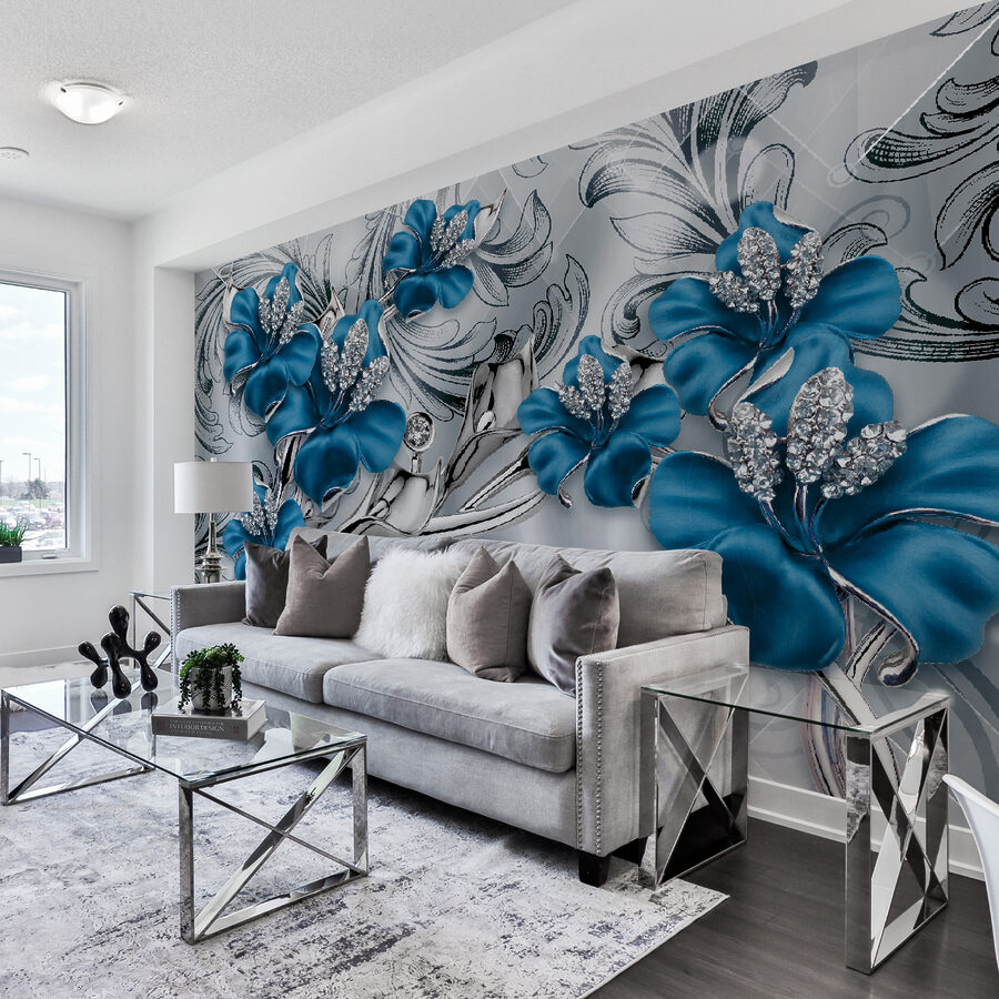 Transformeer je ruimte met deze prachtige muurschildering met sierlijke blauwe bloemen die in elke kamer de aandacht kunnen stelen. Stel je voor dat je je woonkamer binnenstapt en de rustige sfeer over je heen voelt komen. De rijke blauwe bloemen steken af tegen een zachte achtergrond en creëren een rustgevend maar opvallend middelpunt. Perfect voor wie een beetje natuur in huis wil halen zonder de pollen! Of het nu in een gezellig hoekje is of in een grote hal, deze muurschildering kan zowel vreugde als gesprekken opwekken. Vrienden zullen je vragen waar je deze schoonheid hebt gevonden – geef alleen niet al je geheimen prijs!