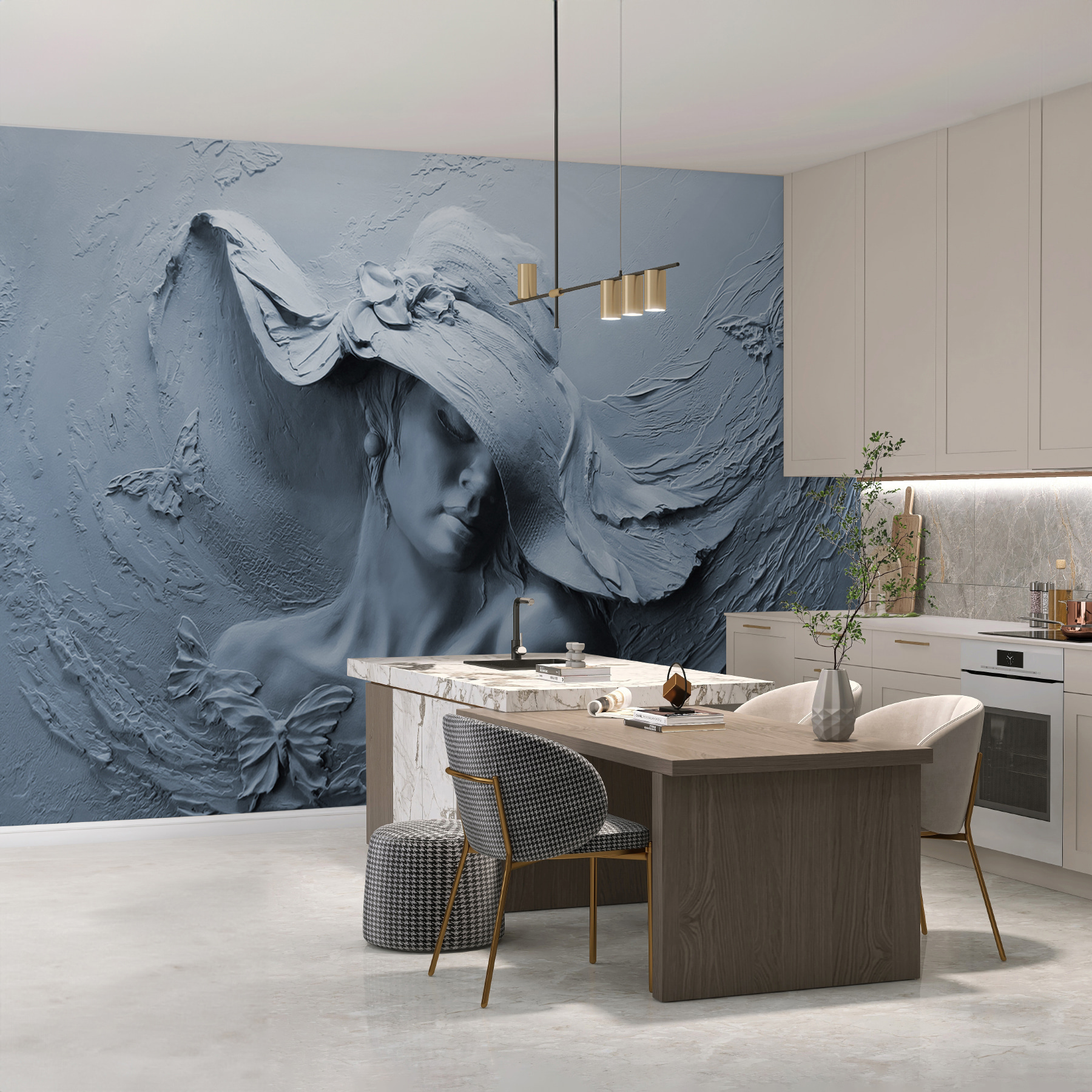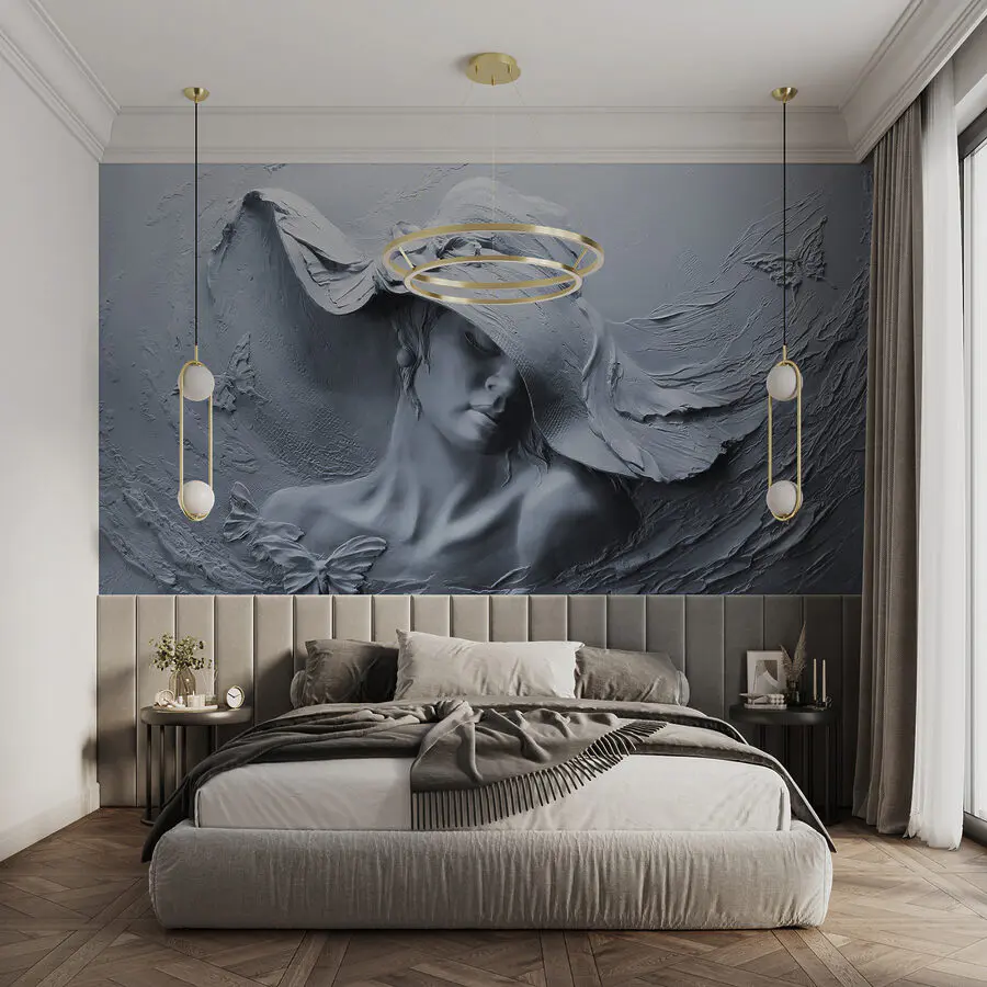 Transformeer je kamer met deze fascinerende muurschildering met een sereen beeld van een vrouw met een hoed. Het is alsof je een zacht briesje in je kamer brengt – onmiddellijk opbeurend. Stel je voor dat je achterover leunt met je favoriete boek, de delicate vlinders die om haar heen dwarrelen lijken bijna levend. Dit opvallende stuk is niet alleen visueel interessant, maar wekt ook dagdromen en verhalen op. Perfect om creativiteit te stimuleren of gewoon om een glimlach op je gezicht te toveren als je langsloopt. Heb je een lege muur? Deze muurschildering is als een warme knuffel, uitnodigend en een beetje mysterieus. Perfect voor iedereen die houdt van een uniek decor dat tot de ziel spreekt.