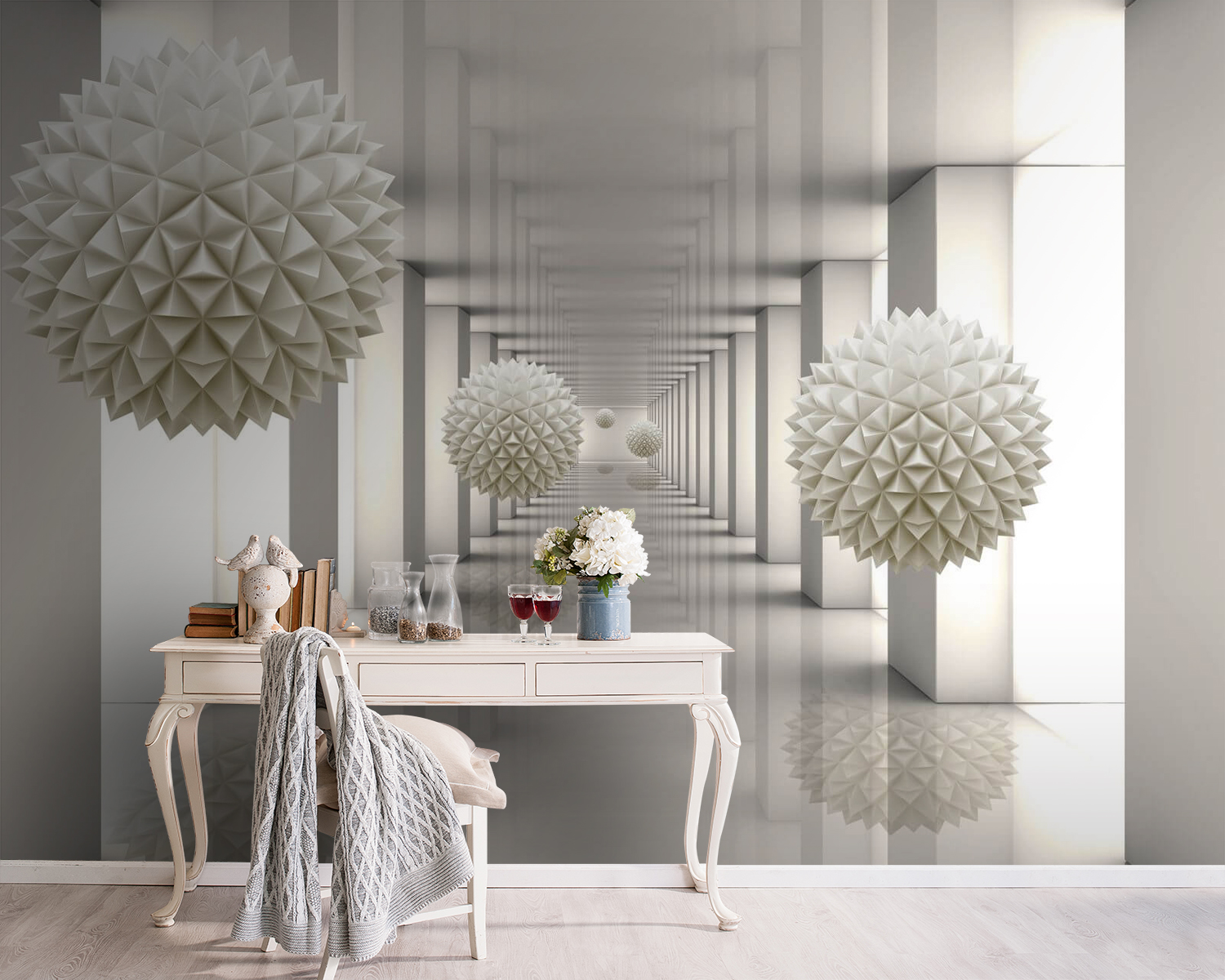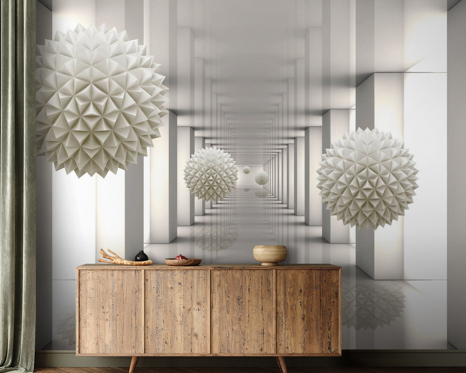 Stel je voor dat je een wereld binnenstapt waar kunst en geometrie elkaar ontmoeten. Dat is wat deze muurschildering “Witte bol met driehoeken” doet: je kamer veranderen in een chique galerie. De 3D-vormen komen tevoorschijn alsof ze klaar zijn om je te begroeten, om gesprekken op gang te brengen en misschien zelfs om een paar dromerige dagdromen te inspireren. Perfect voor iedereen die genoeg heeft van saaie muren en een vleugje moderne, artistieke flair wil. Het is alsof je je kamer een mini-make-over geeft zonder ook maar één hamer te hoeven gebruiken – puur visueel genot! Bovendien voegt het een verfijnde sfeer toe zonder al te in-your-face te zijn. Ideaal om je kamer Instagram-waardig te maken!