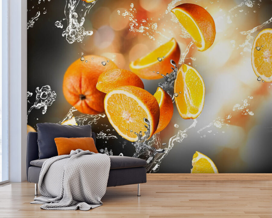 Fleur elke kamer op met deze prachtige muurschildering met sinaasappels die letterlijk een spetterende indruk maken! Stel je voor dat je op een warme dag in een sappige sinaasappel bijt terwijl de zon door het raam naar binnen schijnt. Deze muurschildering geeft dat frisse, pittige gevoel weer, perfect voor een keuken of eetkamer. De levendige sinaasappels die in het koele water plonzen, creëren een dynamische, opvallende sfeer, waardoor je de plons bijna kunt horen. Het is alsof je een verfrissende duik in de zomer neemt, zelfs tijdens de koudste maanden. Wie zou daar niet om glimlachen? Zeg vaarwel tegen saaie muren en hallo tegen een leuke en fruitige ontsnapping!