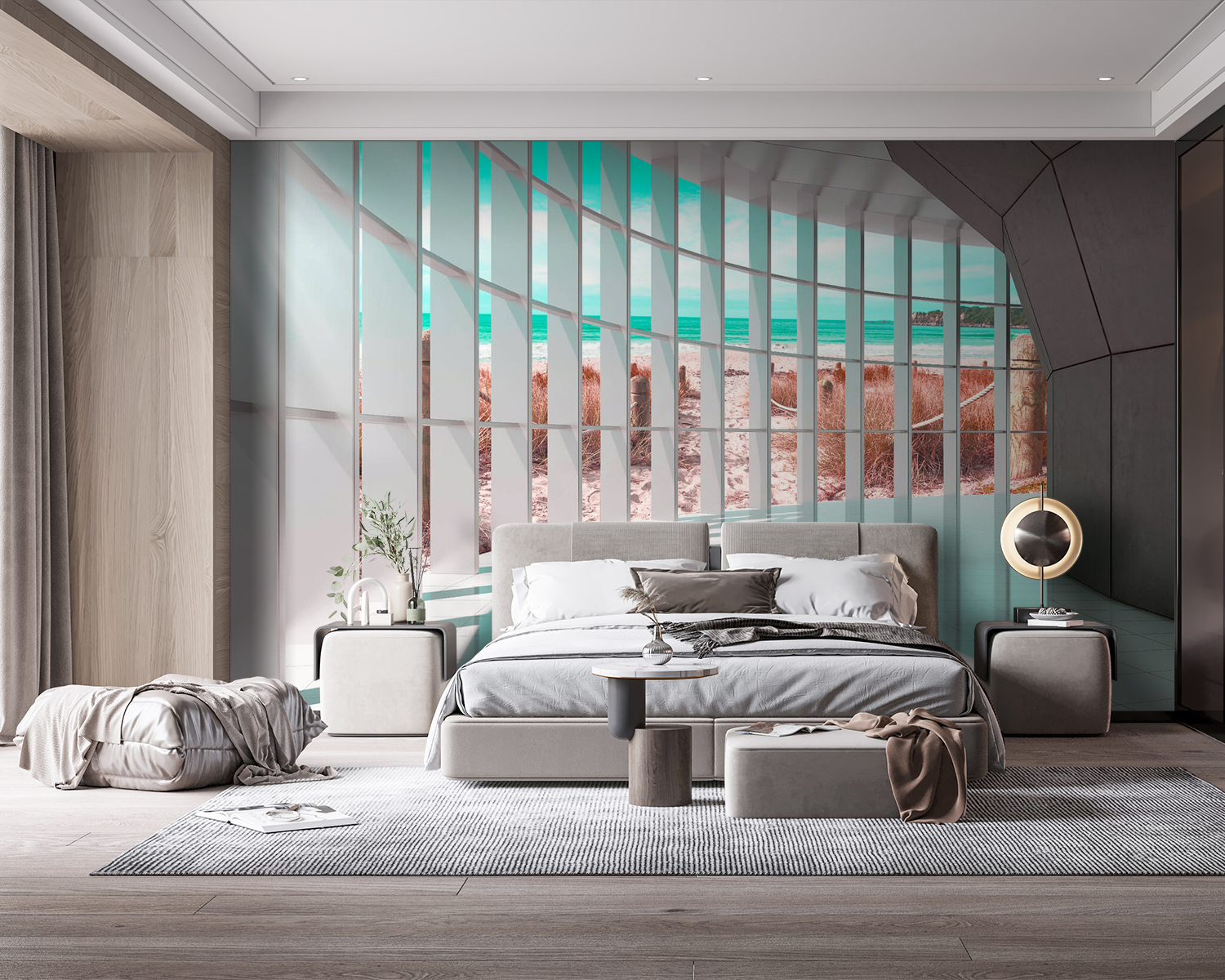 Stel je voor dat je een kamer binnenloopt die baadt in warm zonlicht, waar de rustige blauwe oceaan je begroet door de strakke, moderne ramen. Dat is precies wat je krijgt met de muurschildering “Zonovergoten kamer met zeezicht”. Het is niet zomaar een muurschildering – het is een mini-vakantie voor je muren! Perfect om een vleugje kustsereniteit toe te voegen aan elke ruimte. Of het nu je woonkamer is of een werkruimte, dit prachtige 3D-ontwerp geeft je het gevoel alsof je op het strand bent. Je kunt de golven bijna horen, toch? Duik in dit uitzicht en laat een stukje oceaan je dag tot rust brengen. Mooi en ontspannend, je huis zal aanvoelen als een paradijs aan zee. 🌊🌞