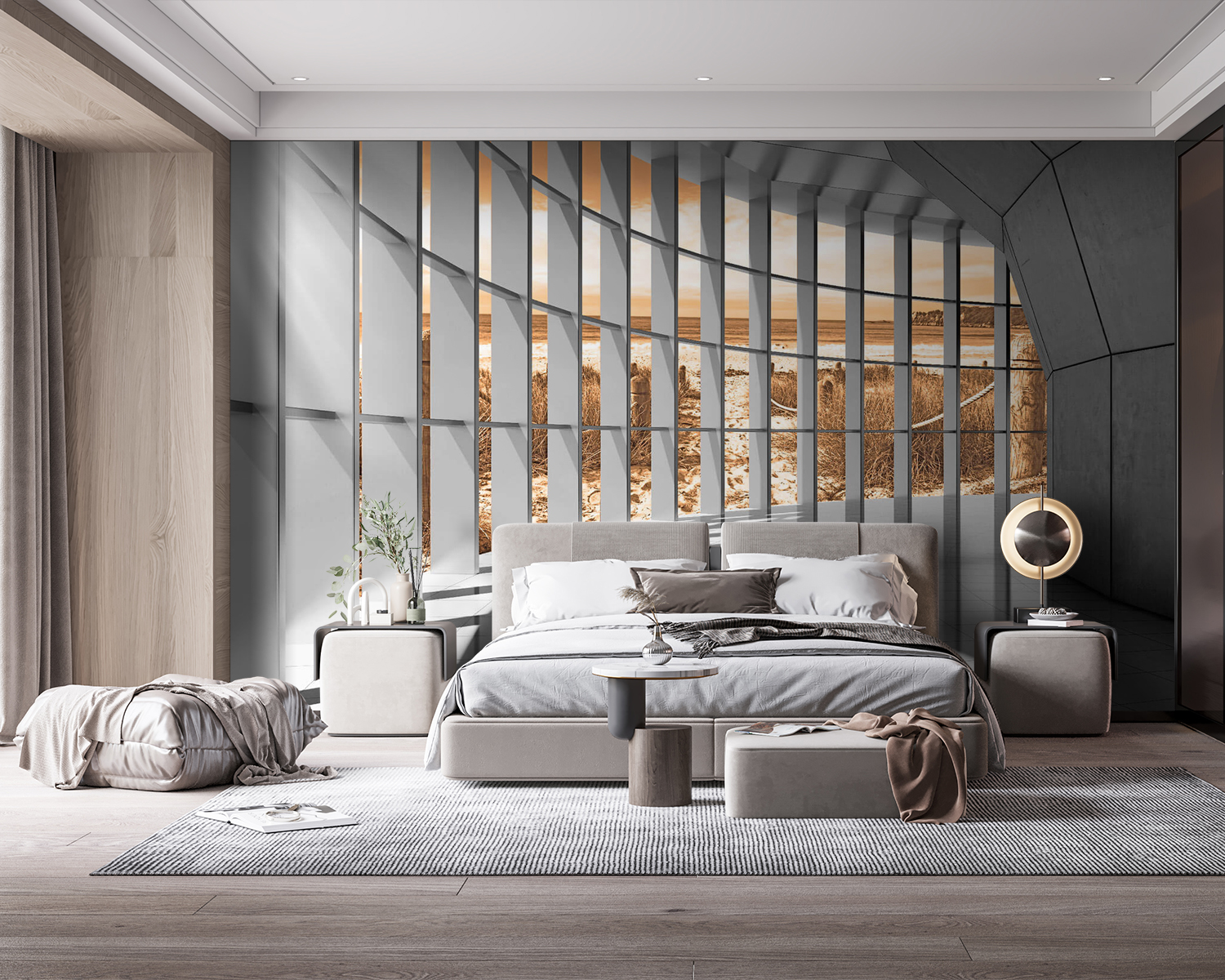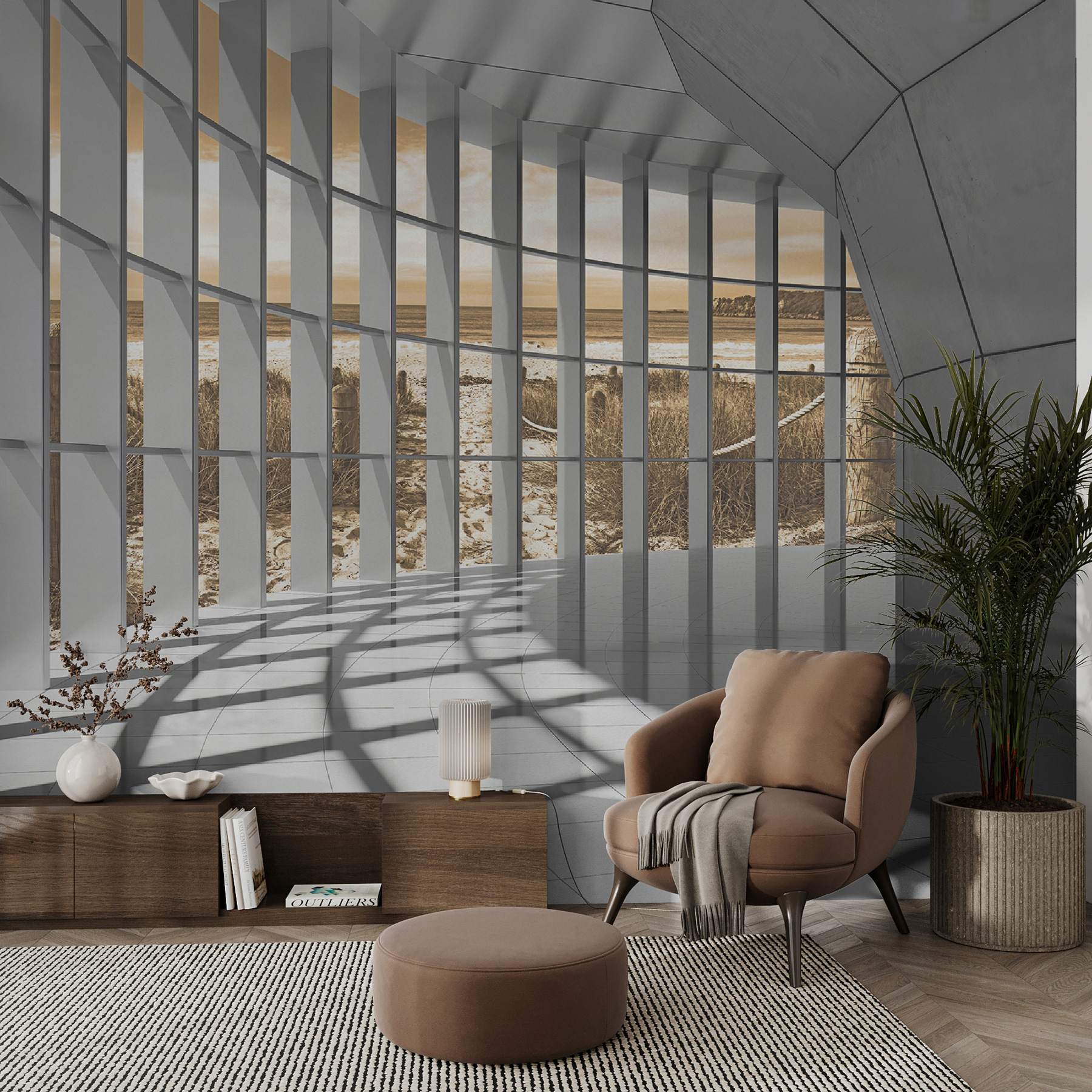 Verander elke ruimte in een oase van licht en perspectief met deze prachtige muurschildering. Stel je voor dat je een grote kamer binnenstapt vol ramen die de zon uitnodigen om over je muren te dansen. Het artistieke spel van schaduwen creëert een warm, knus gevoel, bijna alsof je in een zachte deken gewikkeld bent op een luie middag. Deze muurschildering is perfect om gesprekken op gang te brengen – gasten zullen het gevoel hebben dat ze naar een dromerige plek zijn getransporteerd terwijl ze van hun koffie nippen. Of het nu een woonkamer, slaapkamer of creatieve studio is, deze muurschildering voegt een vleugje charme en een gevoel van ontsnapping toe, waardoor alledaagse momenten net iets specialer aanvoelen. Bovendien, wie houdt er niet van een open uitzicht als ze binnenshuis vastzitten?