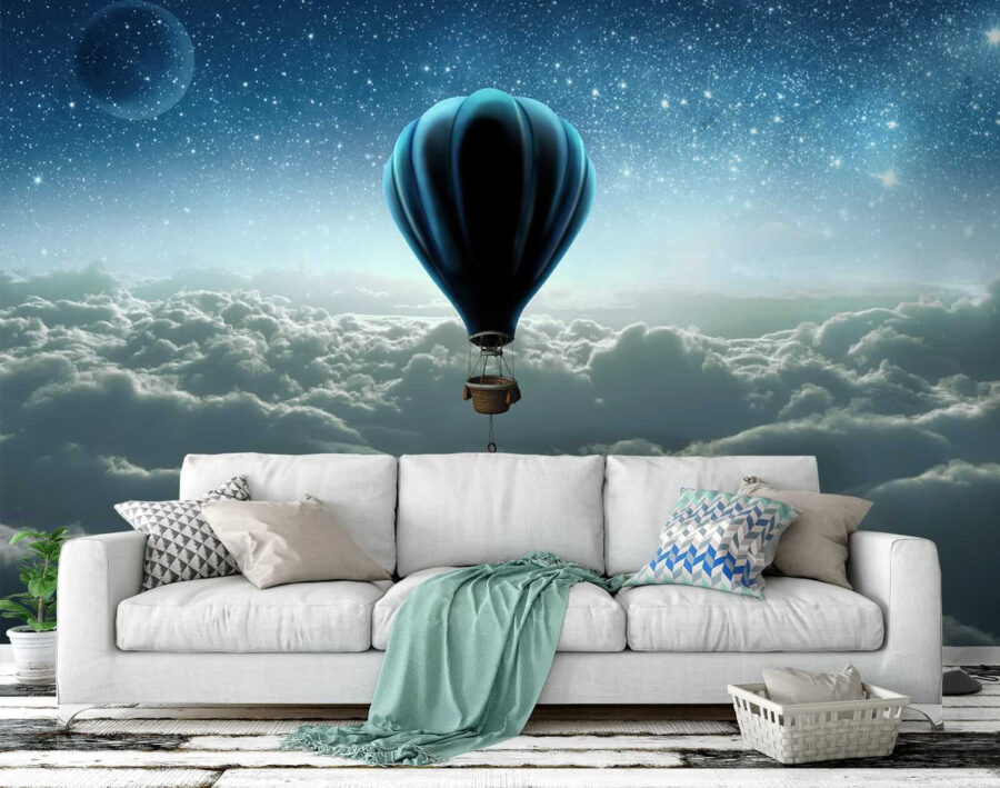 Transformeer elke ruimte met deze grillige muurschildering van een heteluchtballon, een dromerige ontsnapping die hoog boven de wolken zweeft. Stel je voor: levendige blauwtinten en zacht wit die in elkaar overgaan, waardoor elke blik als een mini-avontuur aanvoelt. Perfect voor kinderkamers of elk ander hoekje dat een vleugje magie nodig heeft, het brengt onmiddellijk vreugde en verwondering. Stel je een kleintje voor dat in slaap valt en droomt van zweven door de lucht. Laat de zorgeloze sfeer van deze muurschildering nieuwsgierigheid opwekken, verhalen vertellen en lachmomenten creëren. Een eenvoudige manier om persoonlijkheid en charme in je huis te brengen!