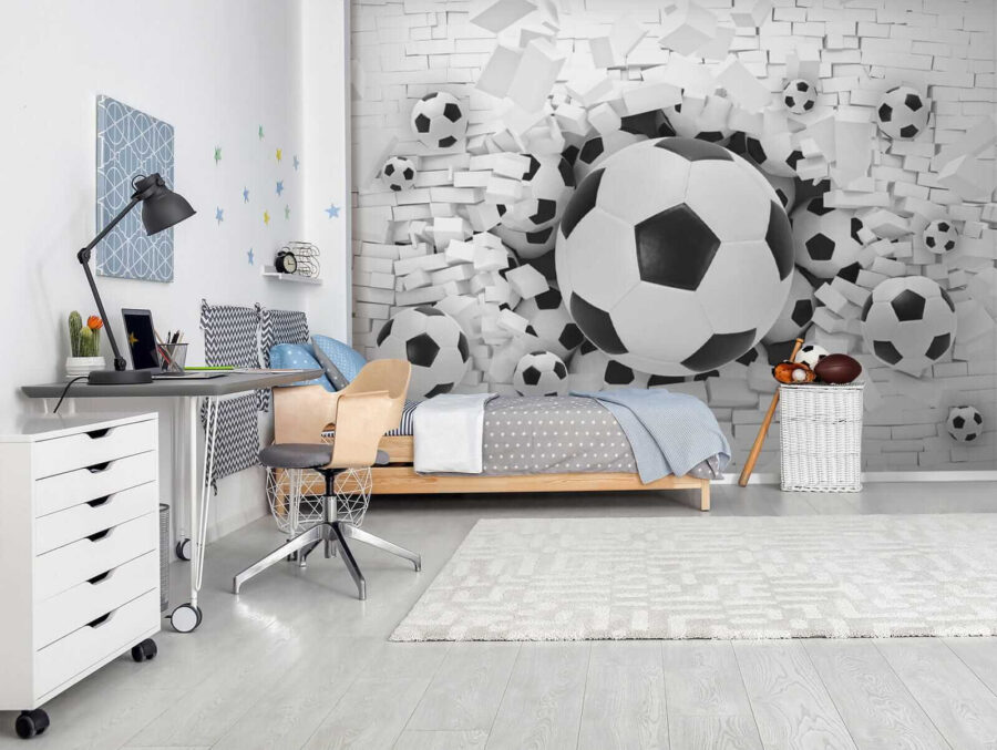 Bekijk deze geweldige muurschildering! Het heet “Voetballen knallen door de muur” en het is perfect als je een ruimte een echte WOW wilt geven. Denk aan voetballen die door een 3D stenen muur breken – super energiek en best leuk, toch? Perfect voor een kinderkamer of zelfs een fancave. Deze muurschildering is niet zomaar kunst – het is een ervaring. Stel je voor dat je elke dag wakker wordt met die uitbarsting van actie of dat je spelletjesavonden organiseert met dit als achtergrond. Deze muurschildering zit in de categorieën 3D, Brick en Children Fotobehang, want dit is het allemaal en nog veel meer. Fleur je muur op met wat sportieve flair!