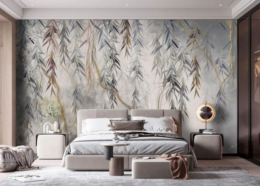 Verander je ruimte in een serene ontsnapping met deze betoverende muurschildering. Met de naam “Abstract gebladerte in zachte mist” fluistert het de gratie van de natuur en nodigt het je uit om rustig adem te halen. Stel je voor: lekker onderuitgezakt op de bank met een warm drankje in de hand, terwijl het delicate gebladerte op de muur danst en een sfeer creëert die aanvoelt als een rustige ochtend in een mistig bos. Deze muurschildering is perfect voor een saaie muur of een accentruimte en brengt een vleugje rust en verfijning. Het is alsof je een frisse wind door je huis laat waaien, waardoor elk moment magischer aanvoelt.