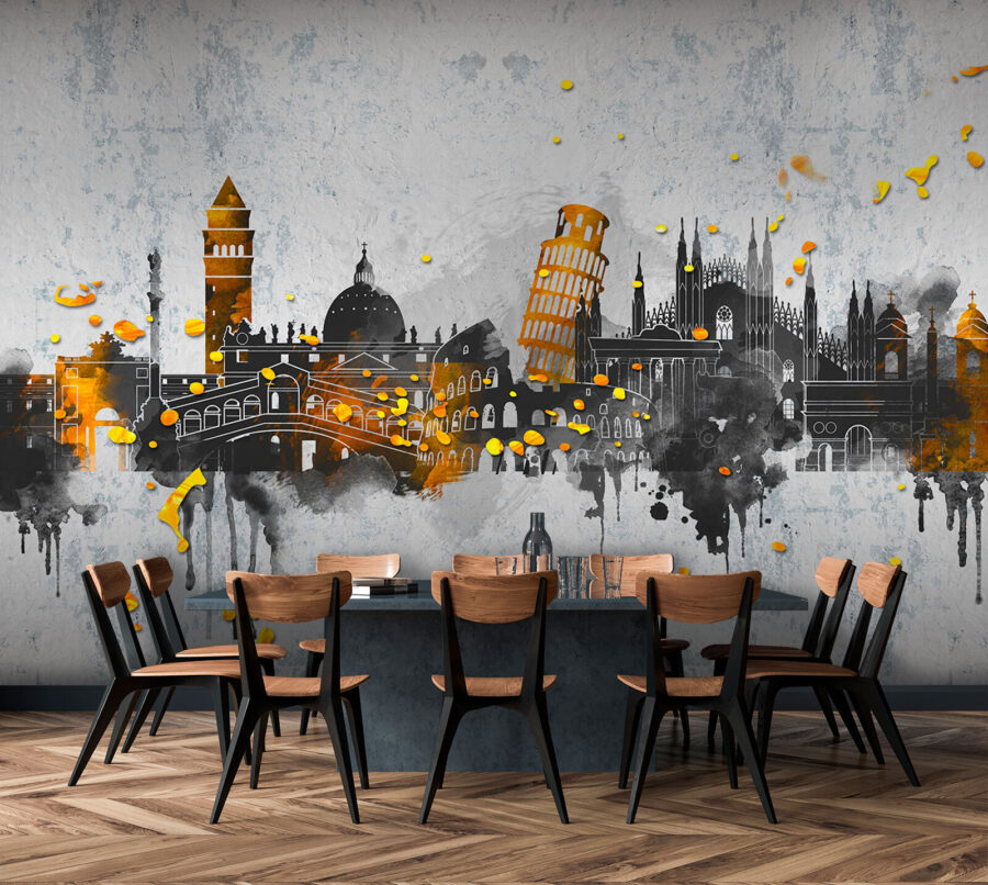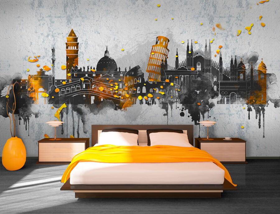 Bekijk deze opvallende muurschildering, “Iconische monumenten in artistieke spetters. Het is alsof je een stukje van elke reisbucketlist-droom op je muur hebt. De spetters van levendige kleuren vermengd met beroemde oriëntatiepunten doen meer dan alleen een kamer verfraaien – ze geven je het gevoel dat je door de straten van een bruisende stad dwaalt. Je zou wel eens kunnen gaan dagdromen over verre oorden en avonturen. Perfect voor een woonkamer waar je vrienden ontvangt die van reizen houden of zelfs voor je eigen gezellige leeshoek. Het 3D-effect voegt een beetje “Wow, knalt dat eruit?” toe. – altijd een goede gespreksstarter! Dus of je nu een wereldreiziger bent of gewoon van kunst houdt, dit stuk brengt een vleugje reislust en een vleugje creativiteit in je kamer.